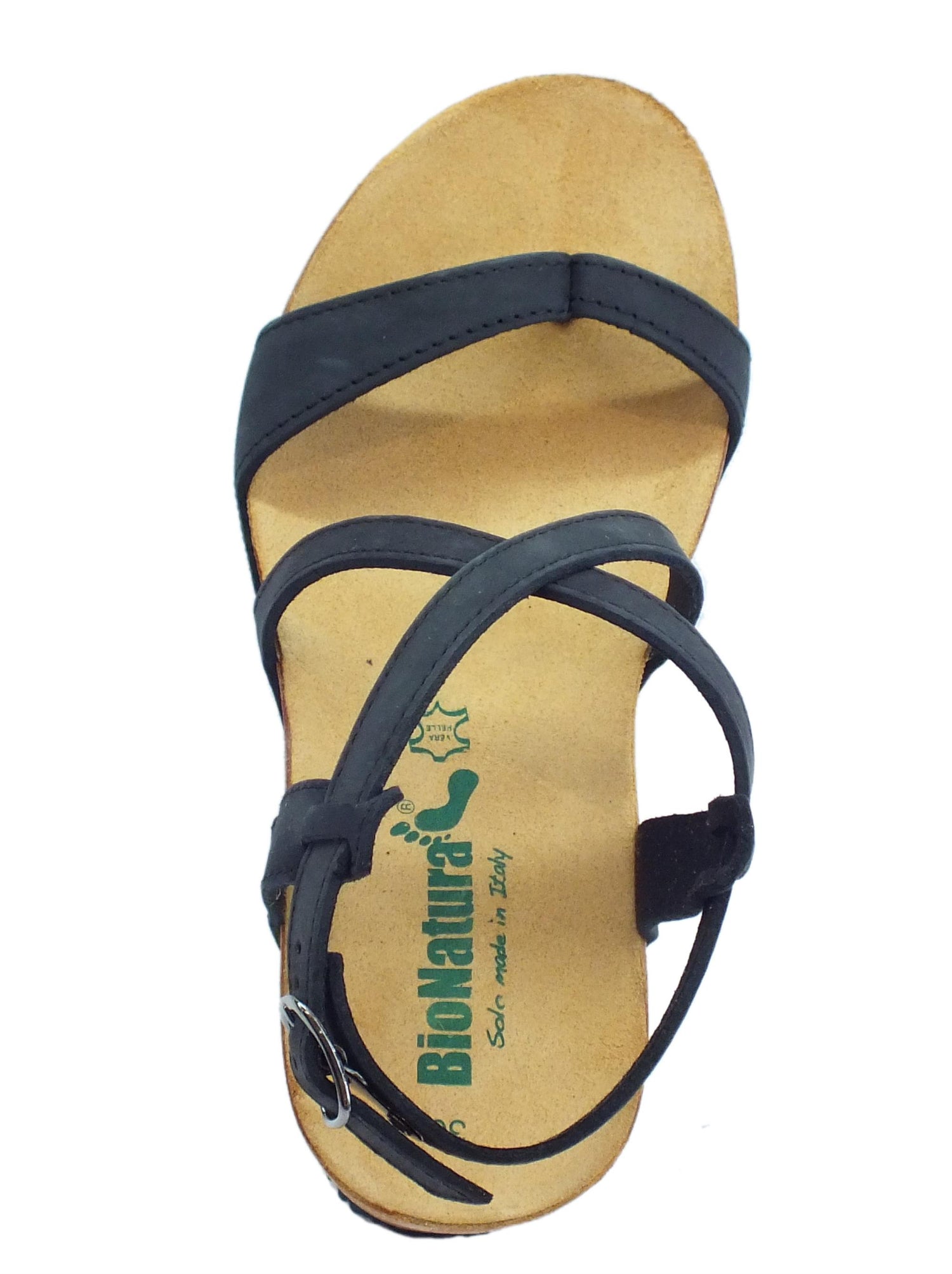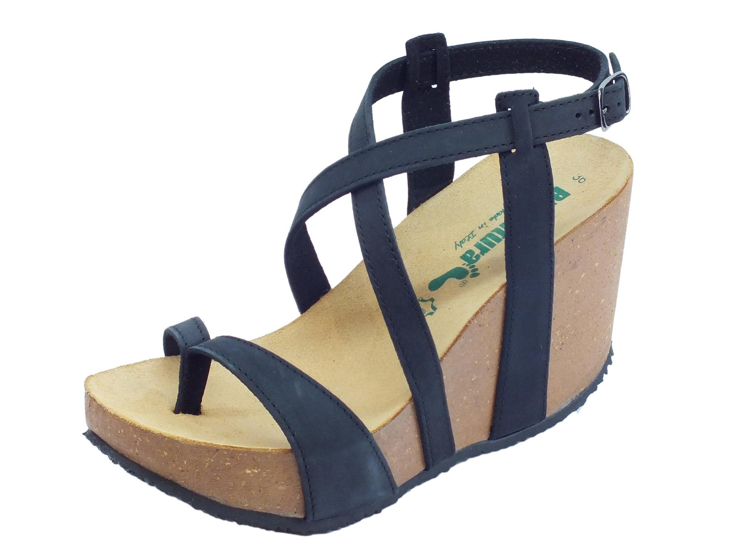 Infradito BioNatura per donna in nabuk nero con zeppa alta - 40 EU is backordered and will ship as soon as it is back in stock.