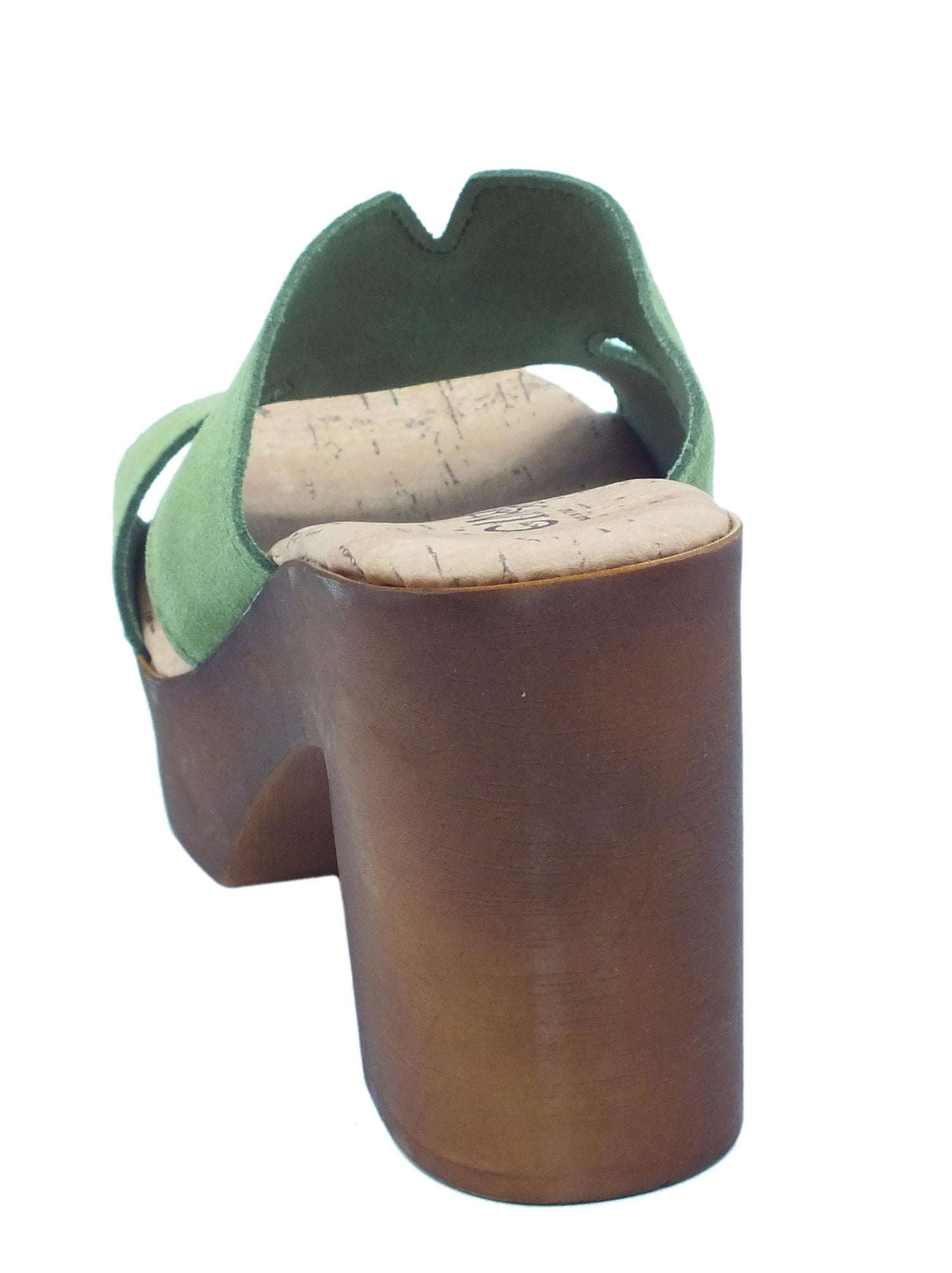 Iaf2833420 verde sandali scalsati donna in nabuk con taccone e plateau effetto legno