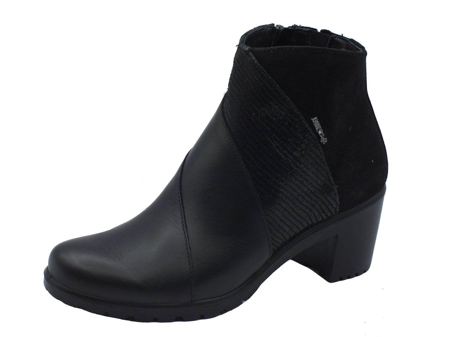 6754911 nappa nero tronchetti per donna in pelle e nabuk con lampo e tacco medio