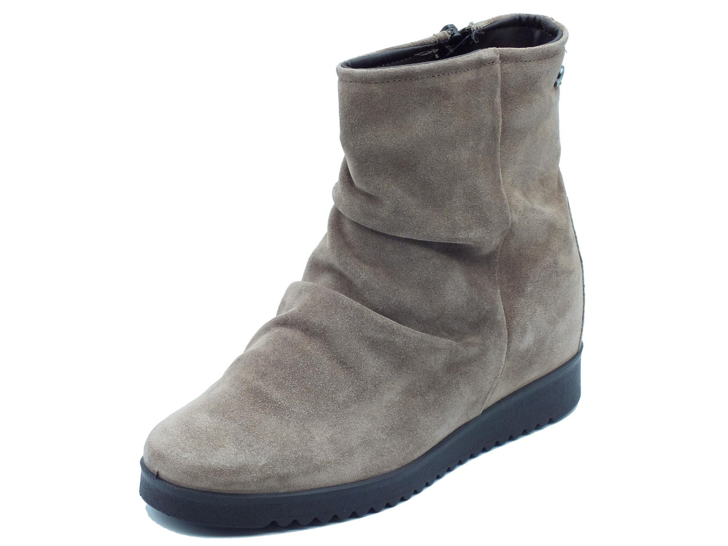 6771344 scamosciato fango tronchetti per donna in nabuk con lampo zeppa bassa