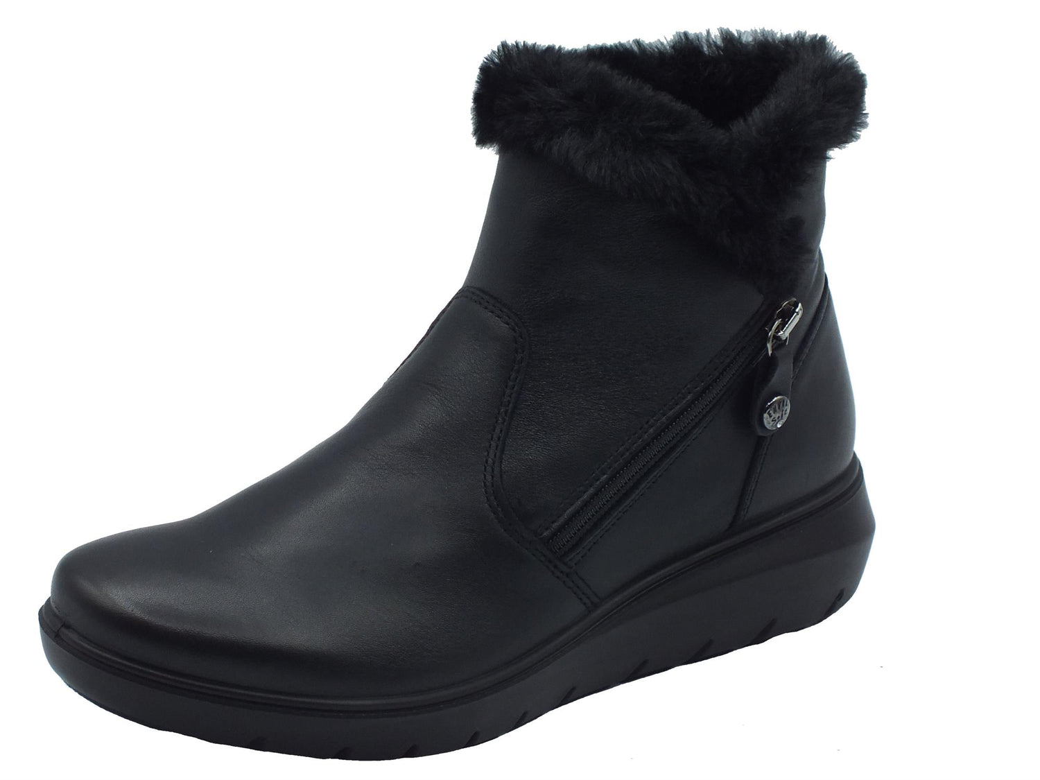 6773600 nappa nero tronchetti per donna in pelle con lampo ed ecopellicciotto