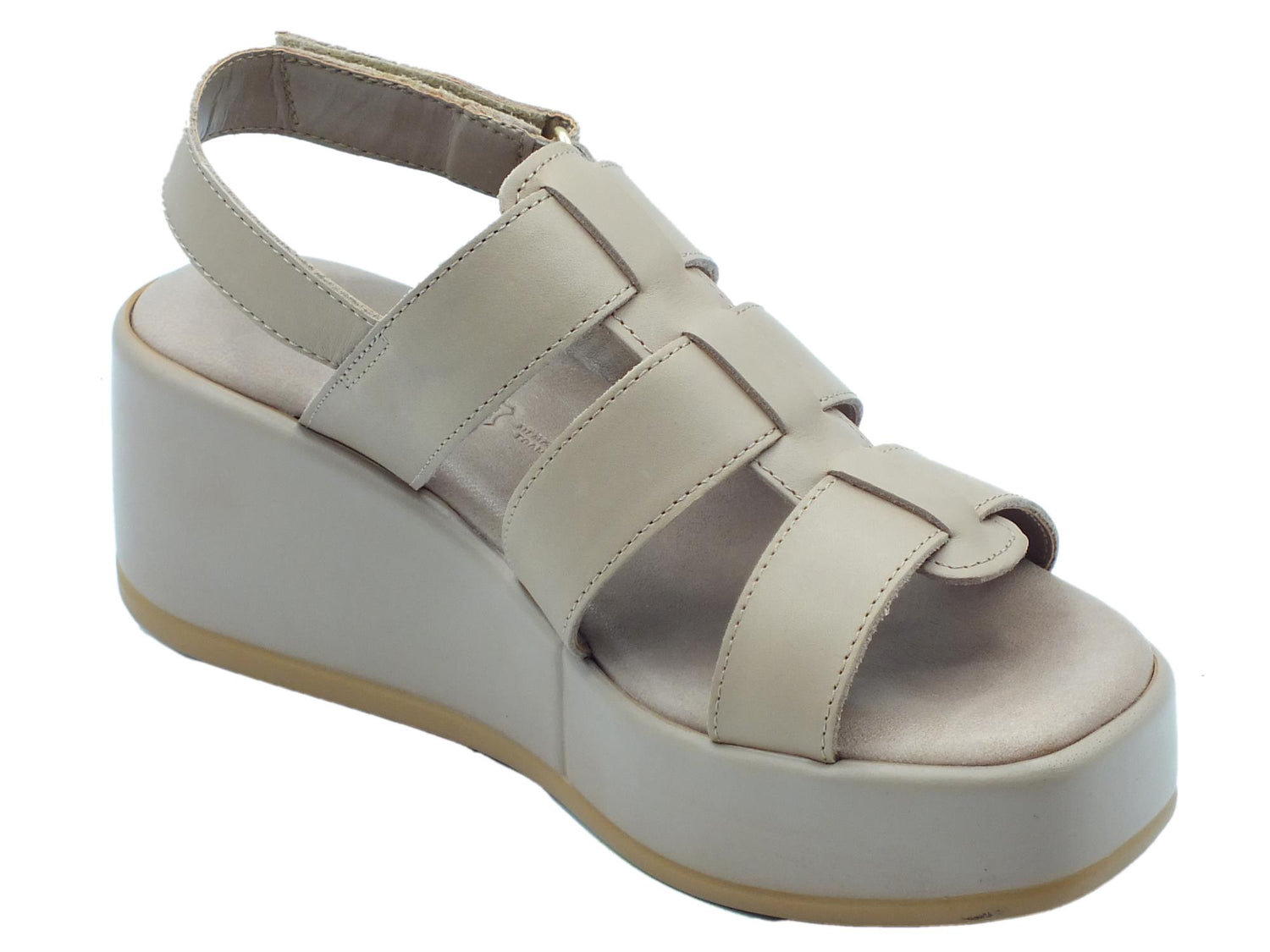 3687222 vitello taupe sandali per donna in pelle con allaccio a strappo e zeppa alta