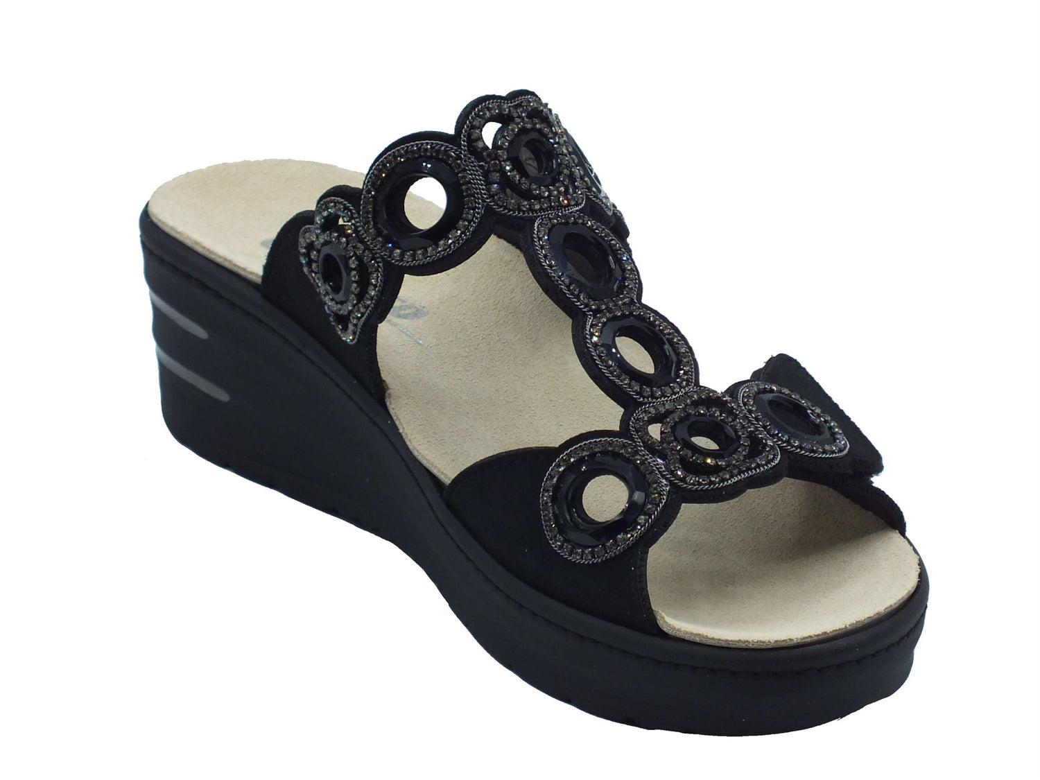 019247 nero sandali per donna in scamosciato con doppio stretch ed estraibile