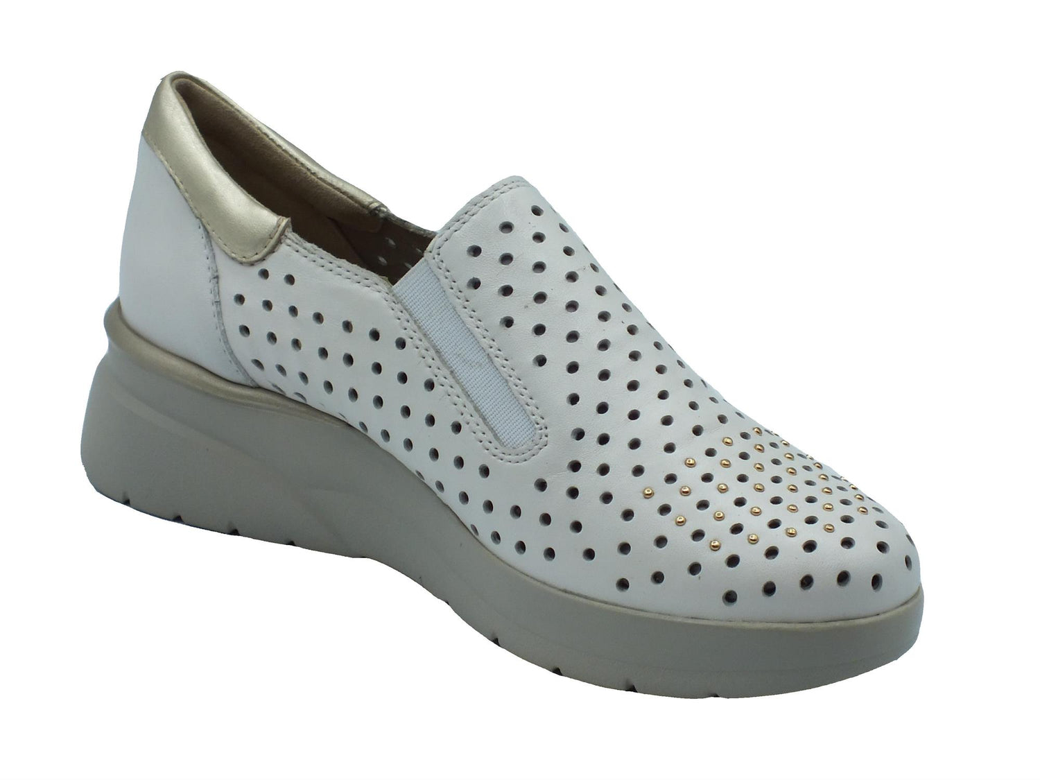 Walk k55432 bianco mocassini confort per donna in pelle con mezza lampo e zeppa