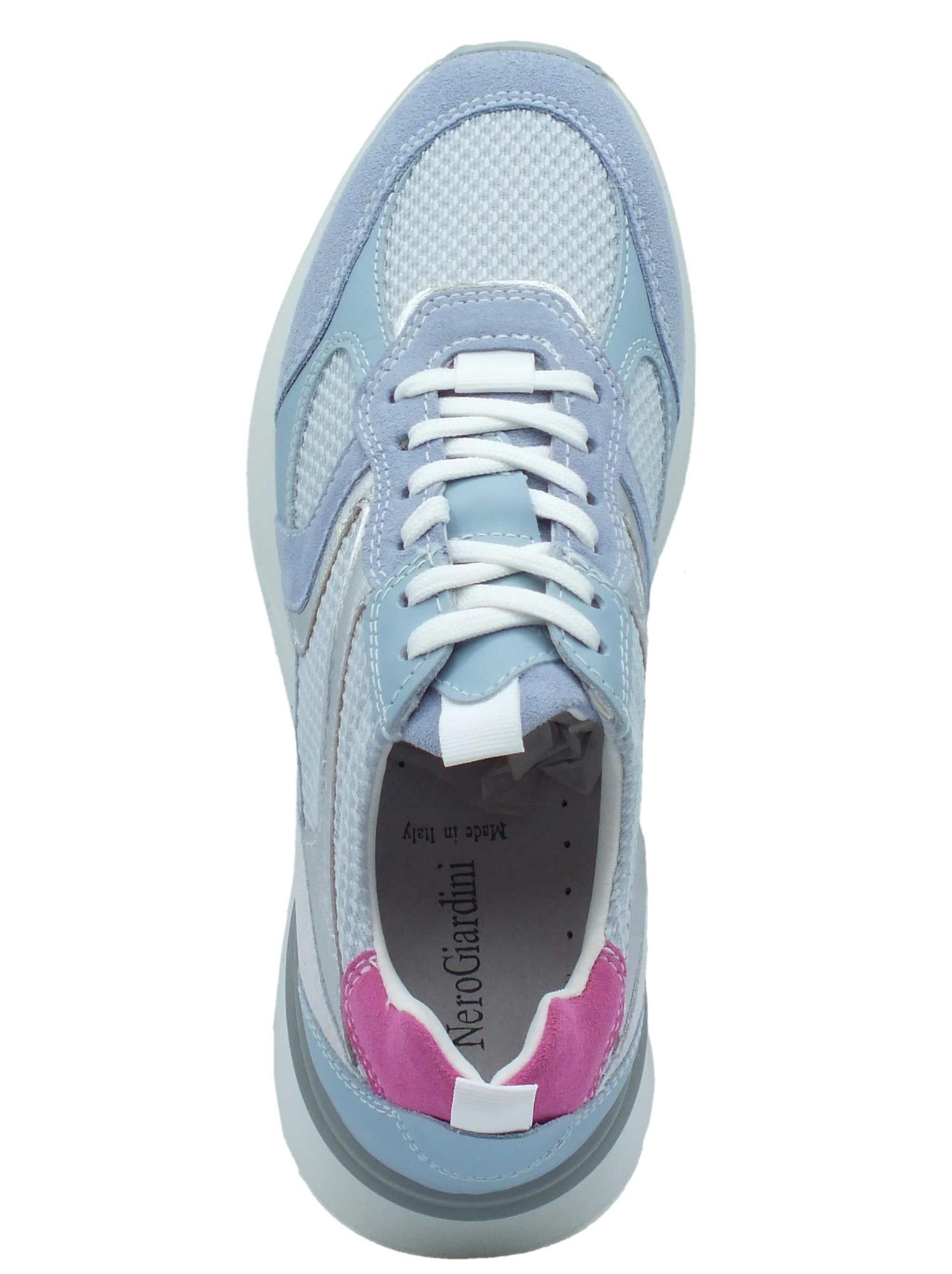 Nerogiardini e409872d velour celeste sneakers sportive donna nabuk celeste tessuto lacci zeppa bassa
