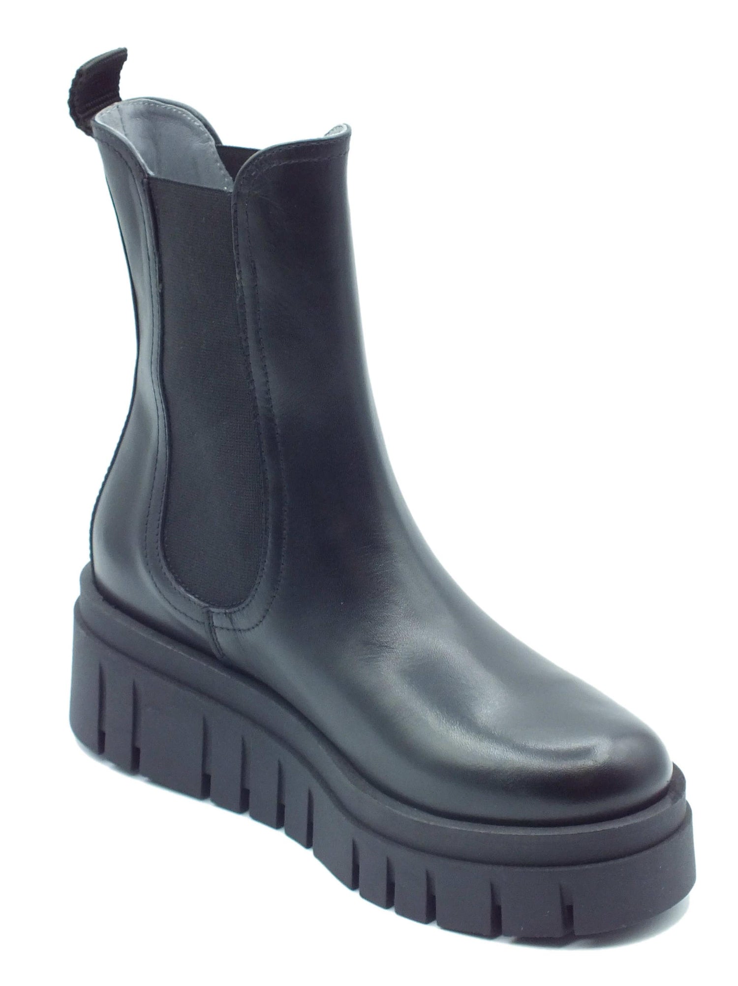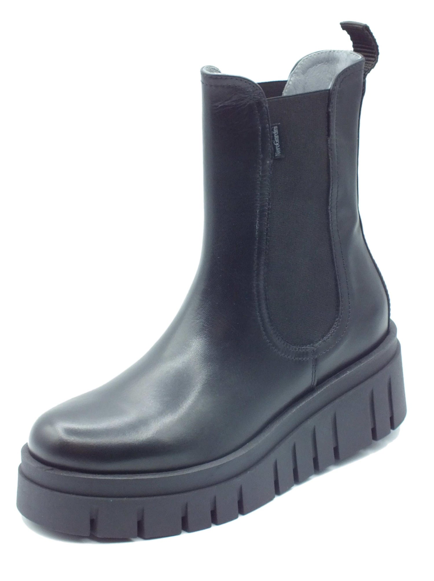 Nerogiardini i309090d guanto nero tronchetti per donna pelle doppio elastico laterale e zeppa alta