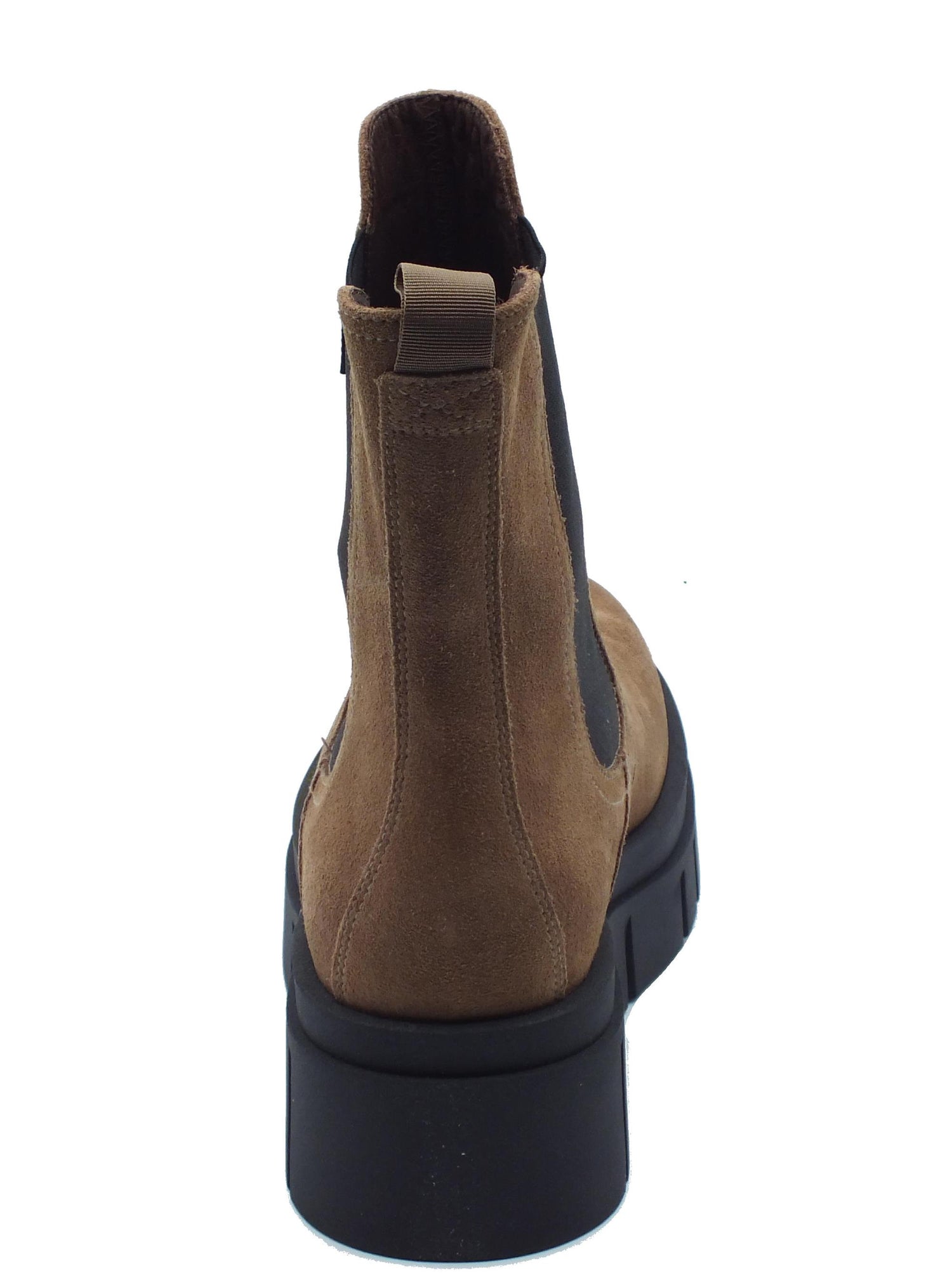 Nerogiardini i411925d velour mou tronchetti beatles con zeppa per donna in nabuk beige