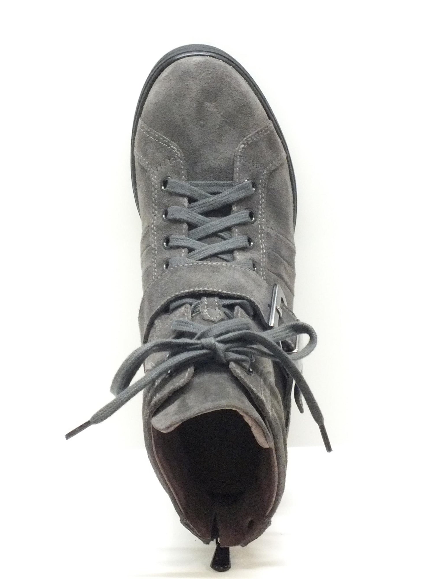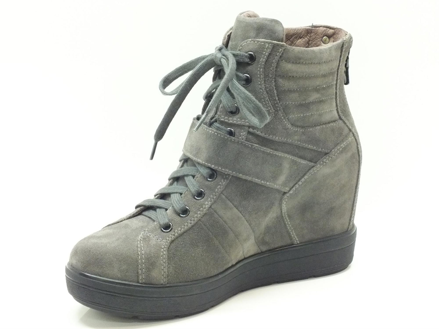 Tronchetti per donna in camoscio grigio con zeppa interna