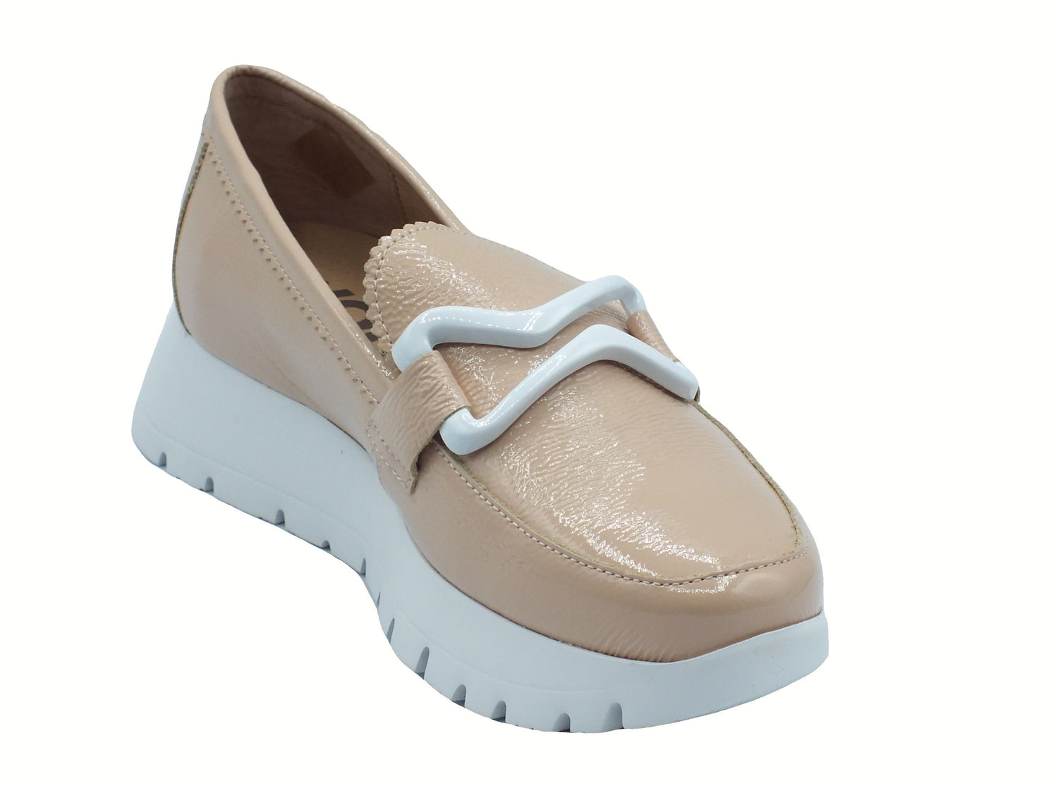 A-2480 aura lack palo mocassini per donna in pelle verniciata beige zeppa media