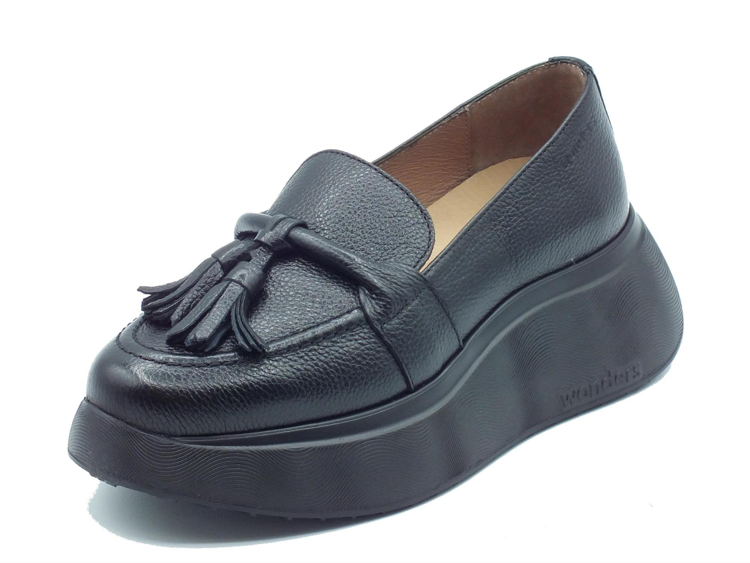 A-3615 wild negro mocassini per donna in pelle con zeppa alta