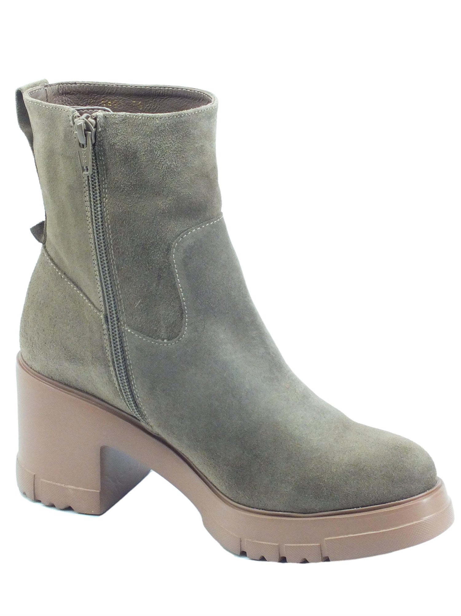 H-4421 veldry taupe tronchetti accollati per donna in camoscio tacco nedio