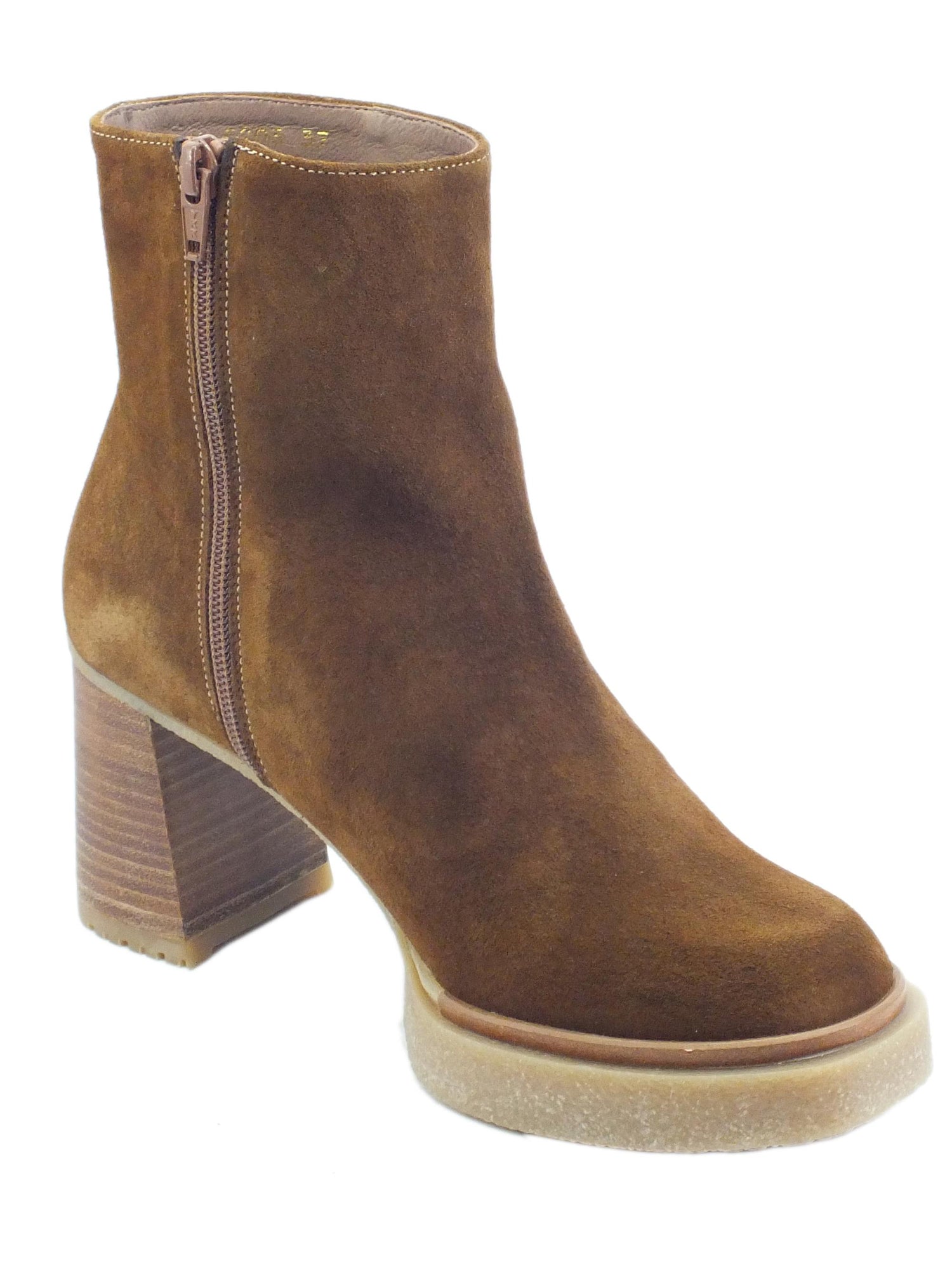 H-5203 luxe capuccino tronchetti accollati per donna in nabuk marrone tacco alto