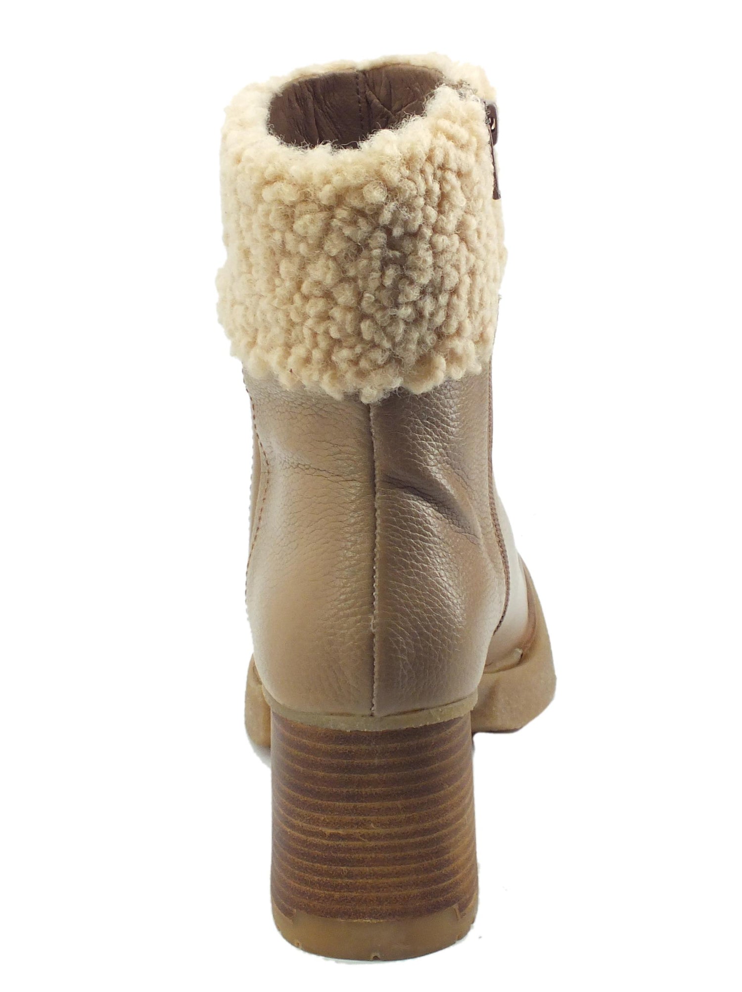 H-5205 indios taupe tronchetti eleganti per donna in pelle con pellicciotto