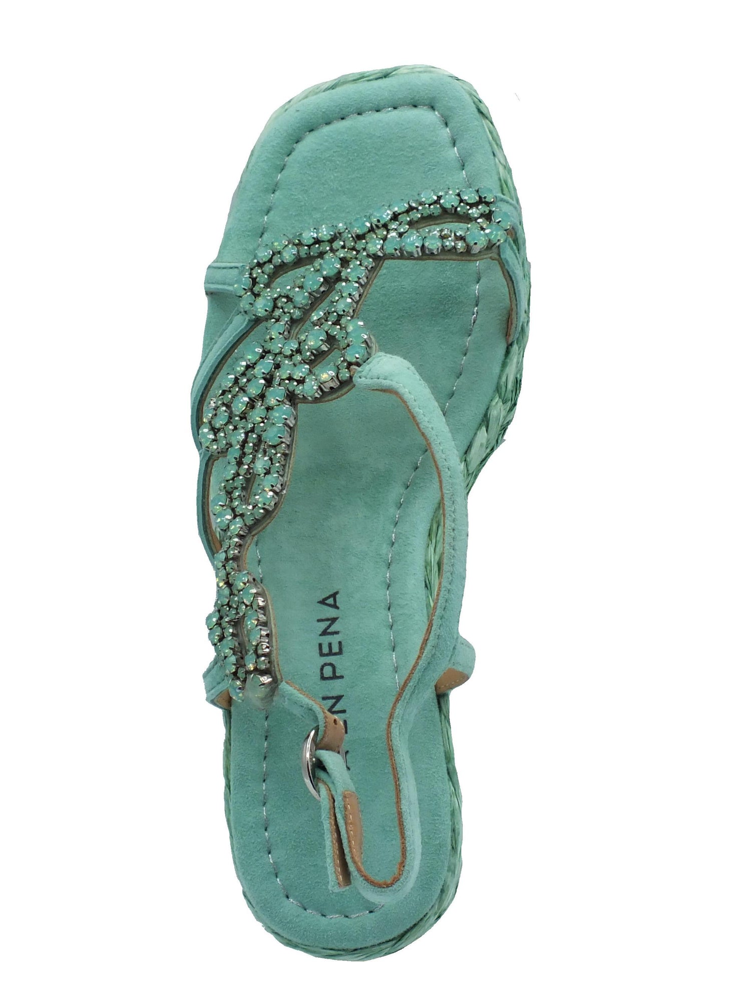 V241010 suede mint sandali eleganti per donna con brillanti verde zeppa alta