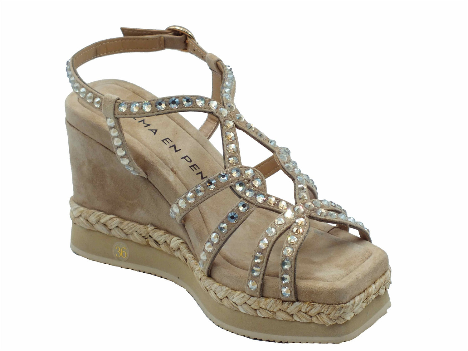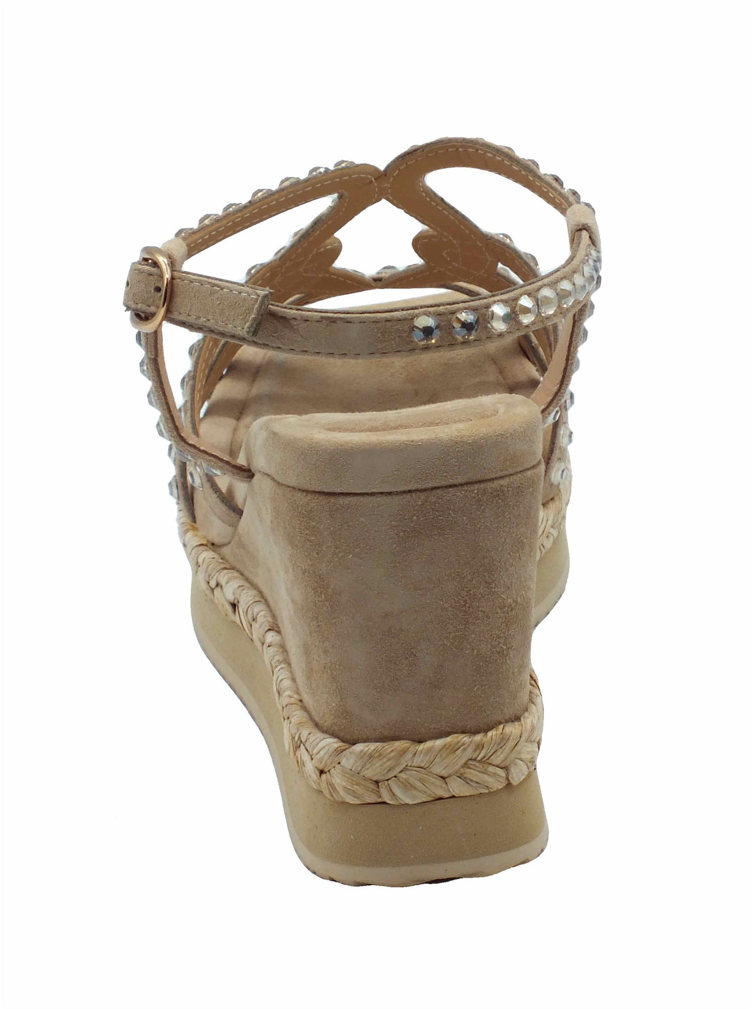 V251240 suede sand sandali eleganti per donna con brillanti argento zeppa alta