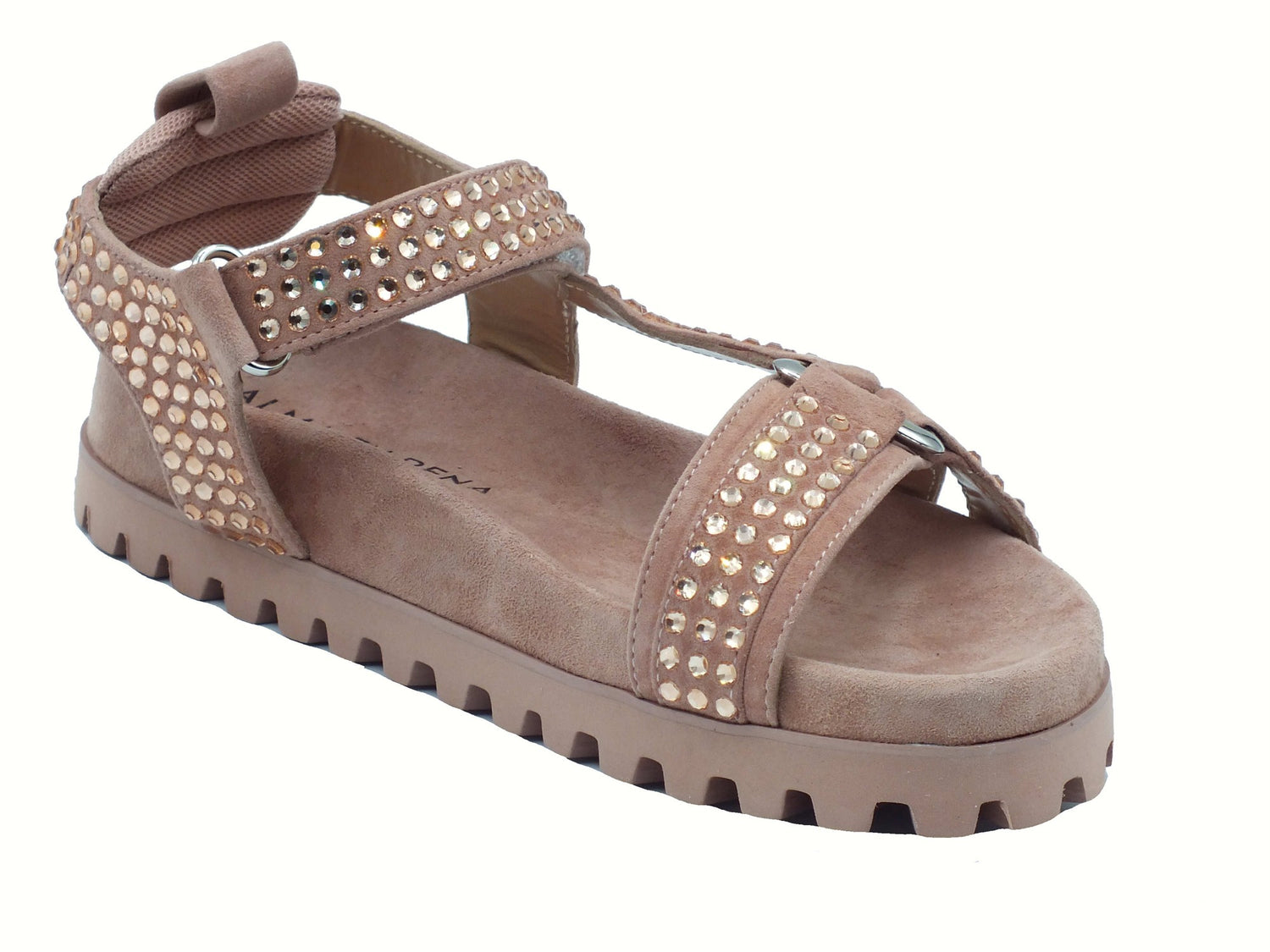 V251703 suede old pink sandali per donna in econabuk con applicazioni argento zeppa bas