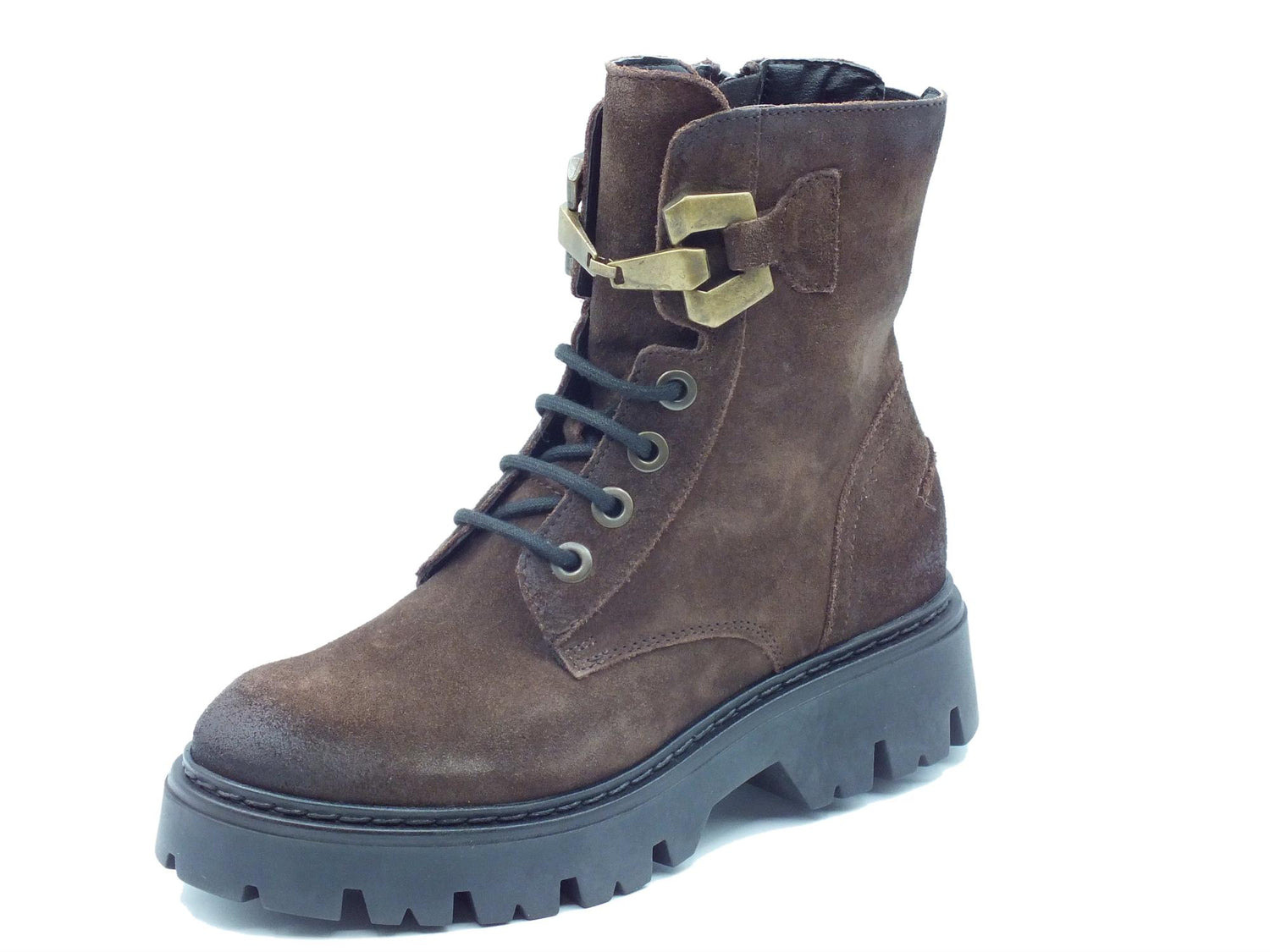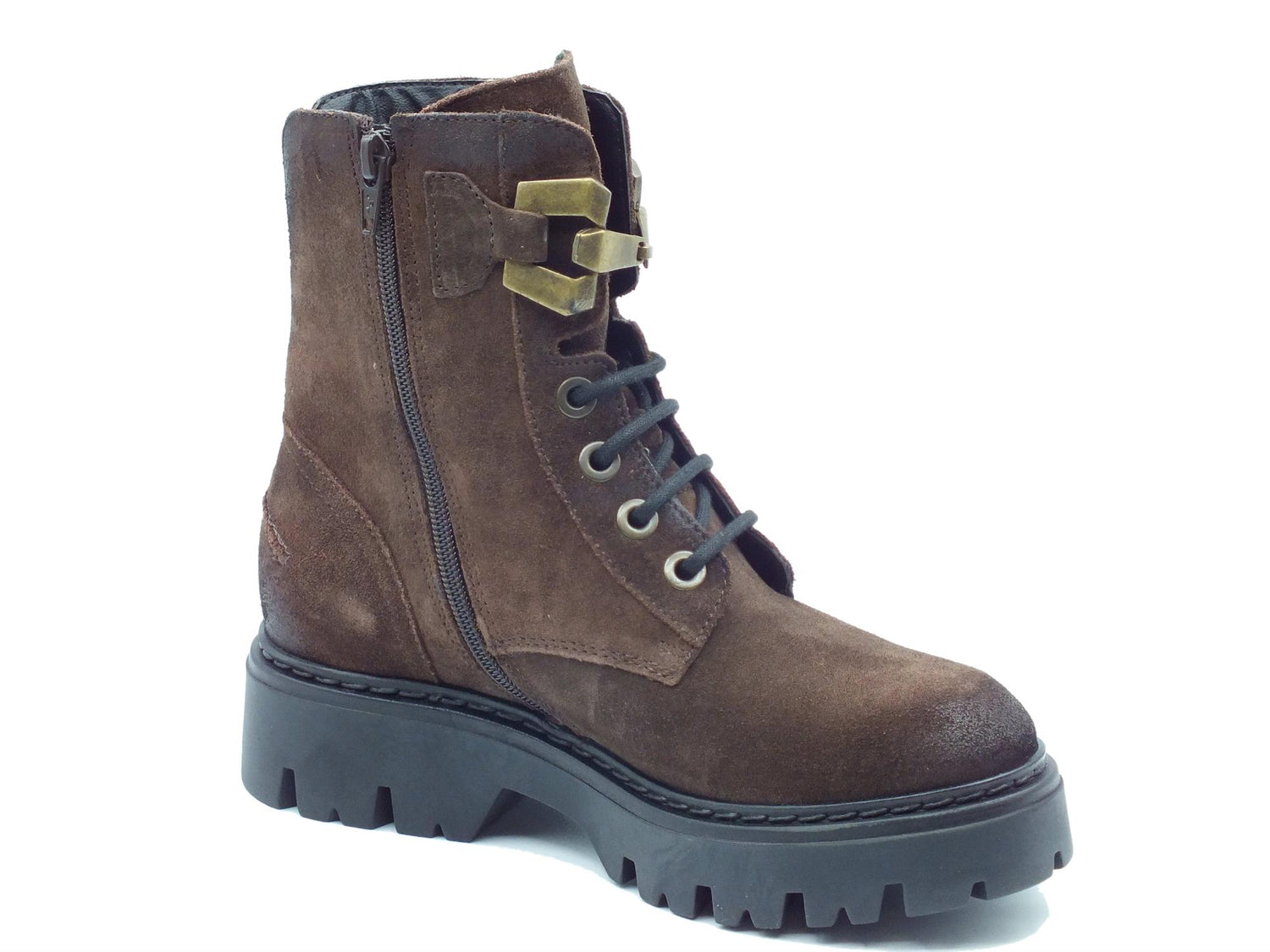 Fm6013 caffè scarponcini per donna modello anfibio in nabuk con lampo e lacci