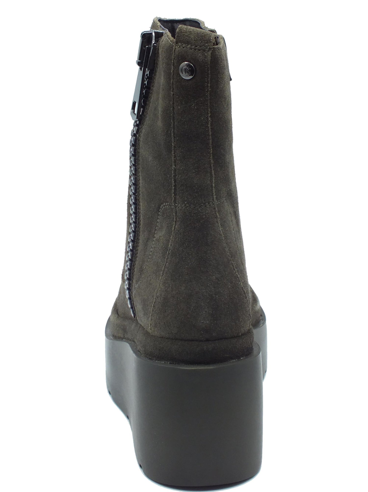 Ha6011 verde tronchetti per donna in nabuk con lampo e zeppona