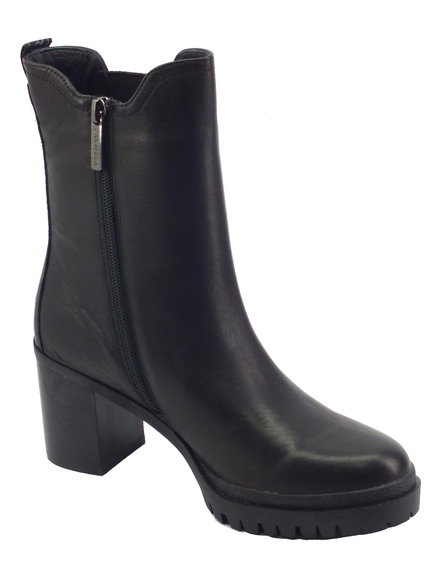 160315 bn. piel negro tronchetti per donna in pelle lampo ed elastico tacco alto