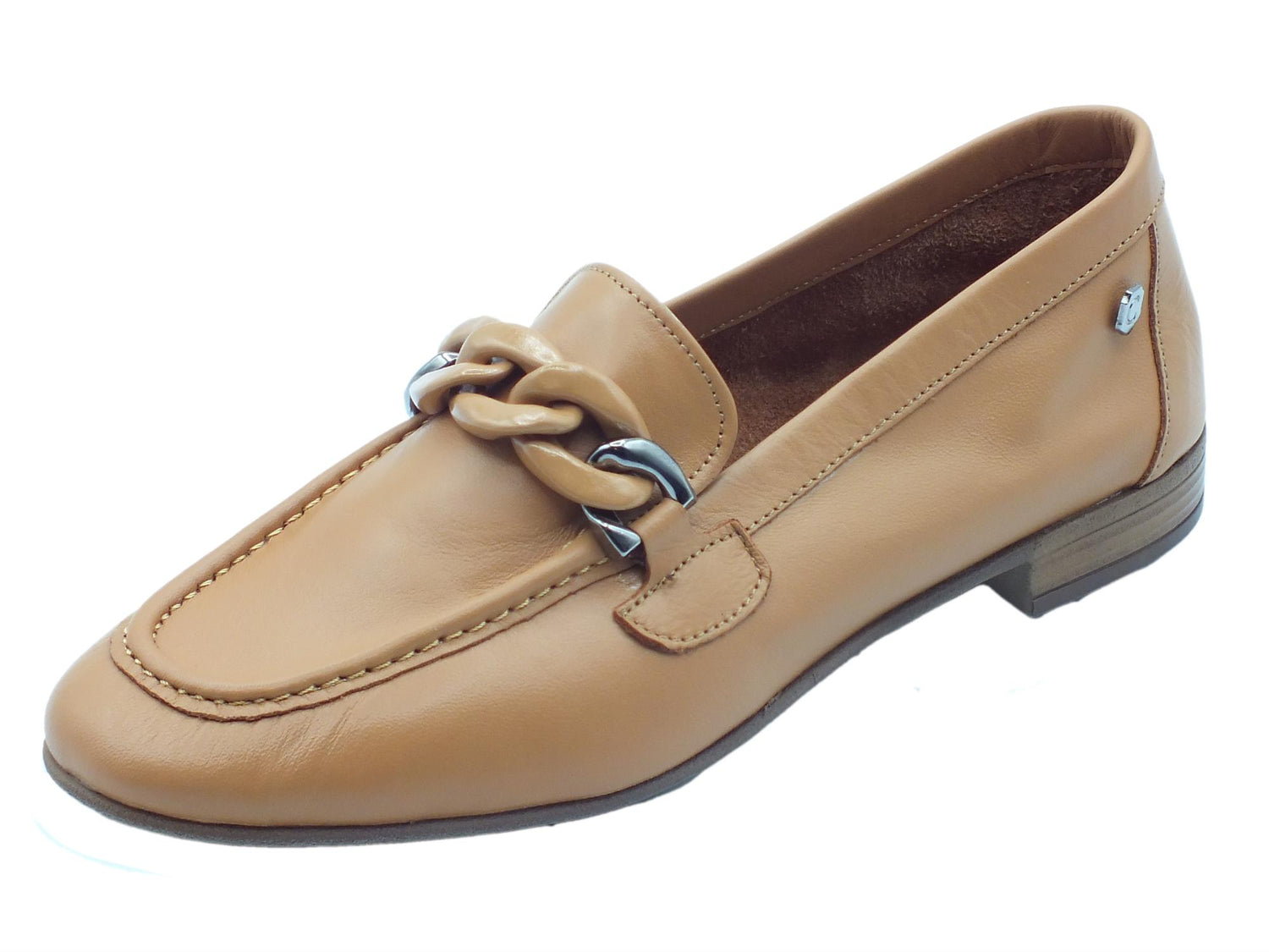160737 z.piel camel mocassini classici per donna in pelle con tacchetto