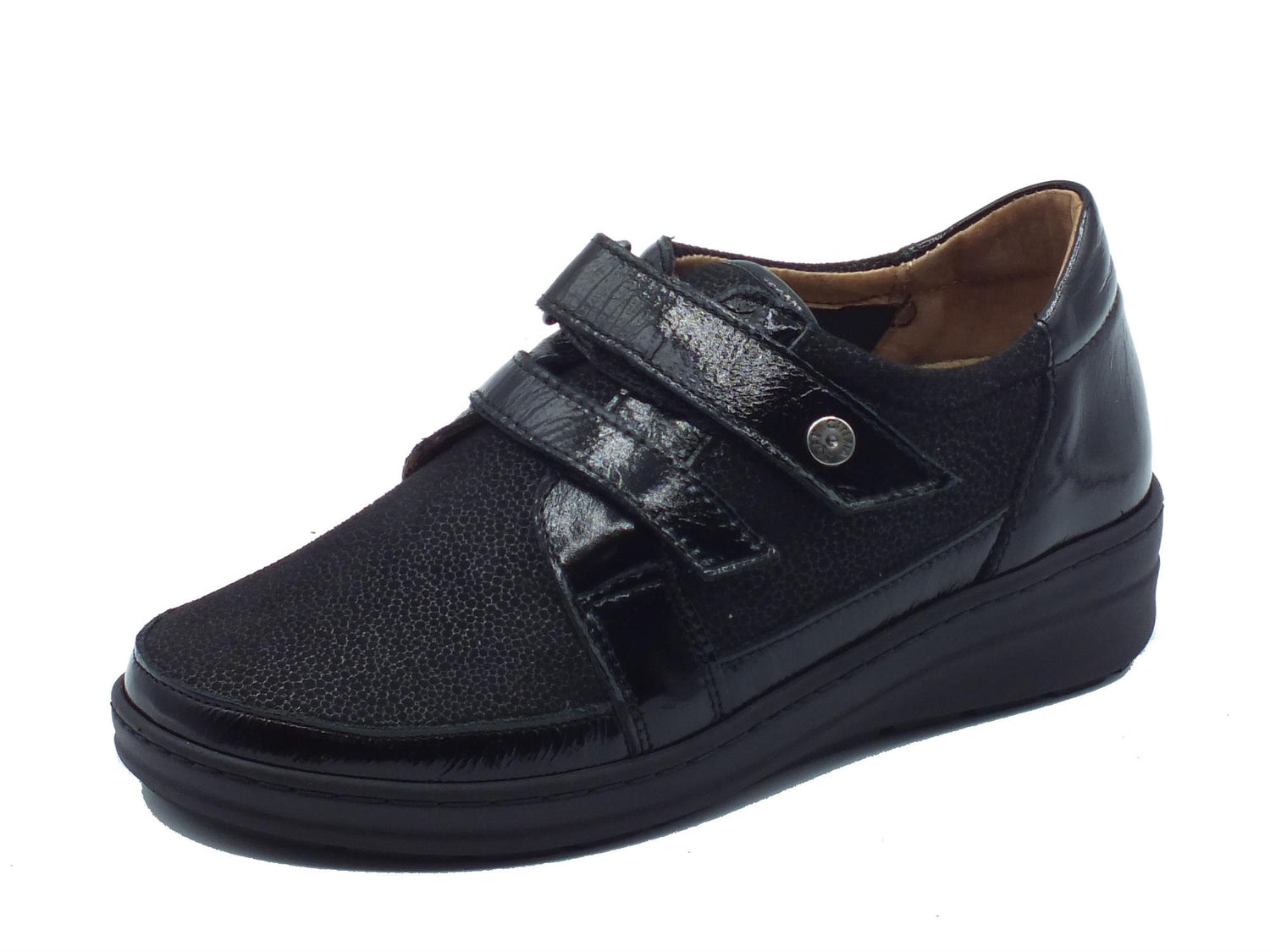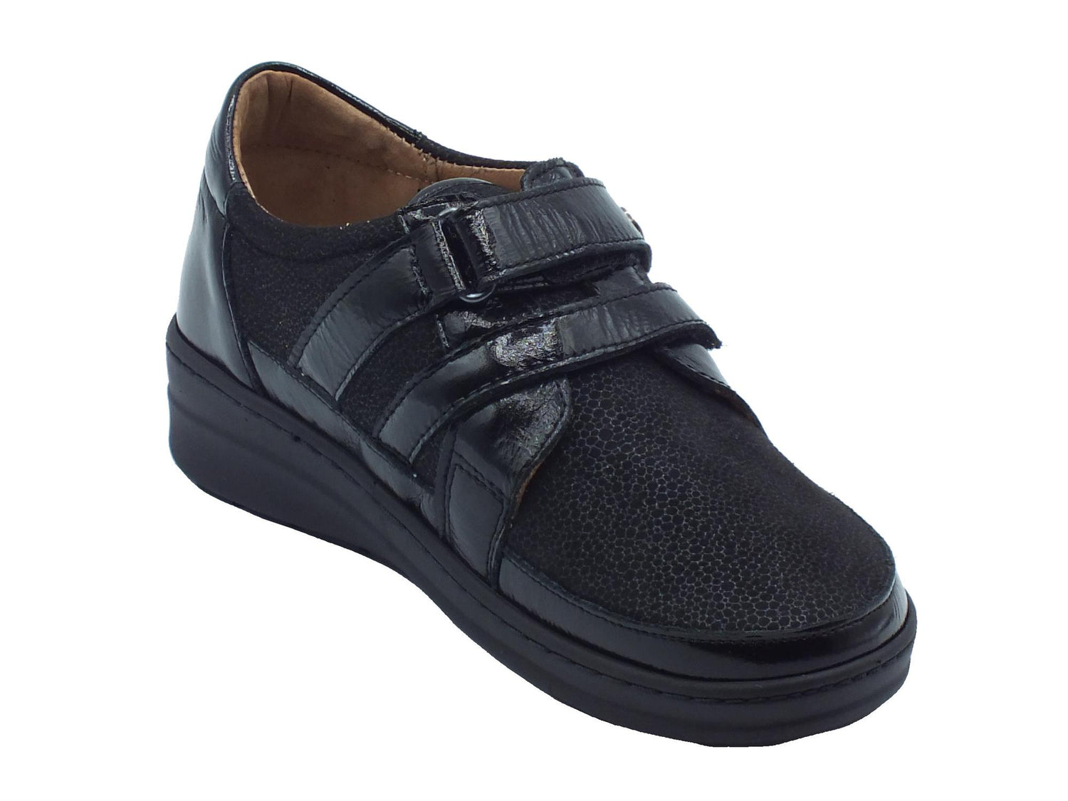 Im54018mvv nero sneakers confort per donna in pelle con doppia chiusura a lampo