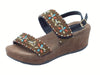 It1040 bronze multi sandali donna con perline brillantini multicolore zeppa media