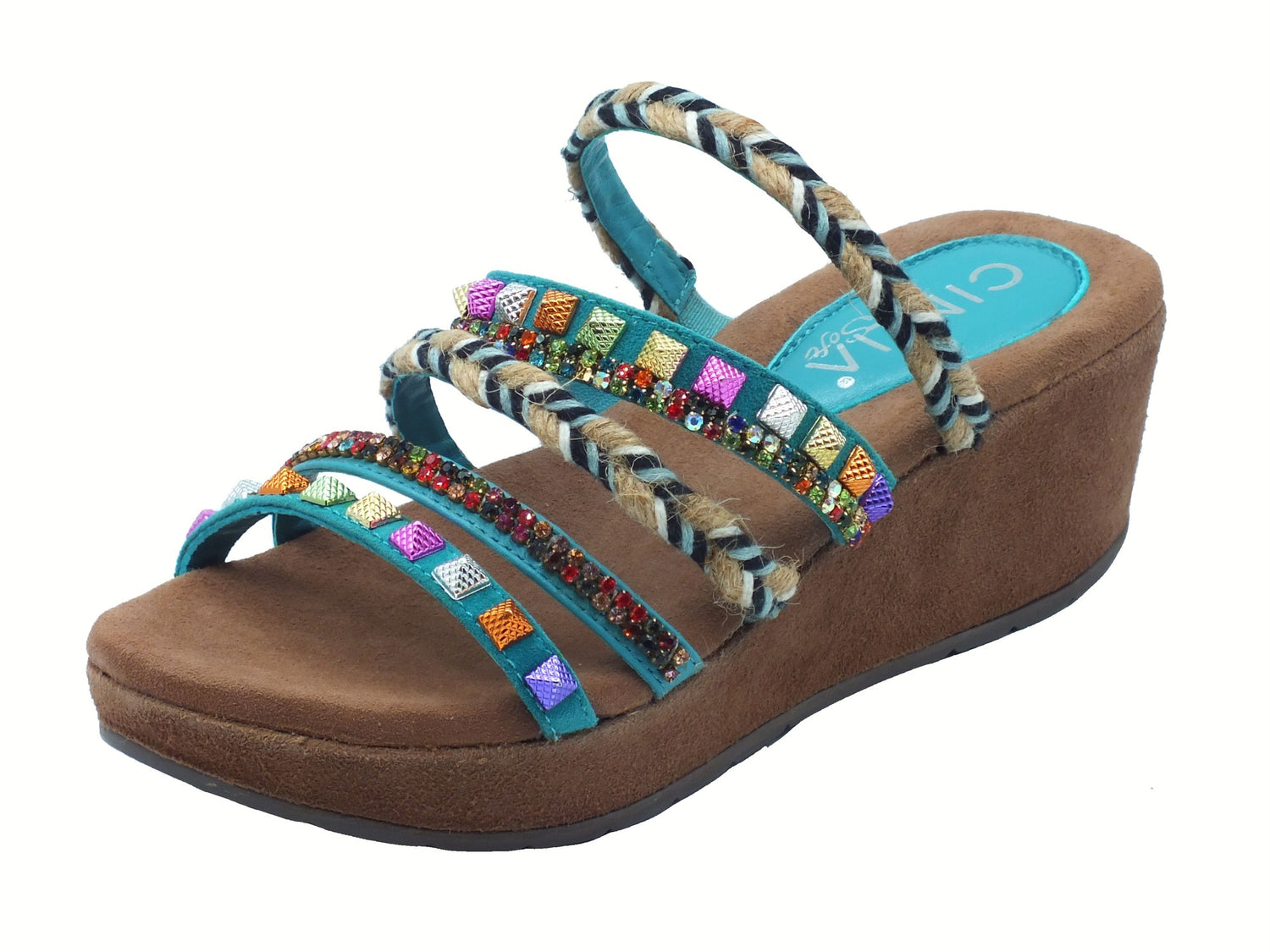 It1041 turquoise multi sandali per donna perline brillantini multicolore zeppa media
