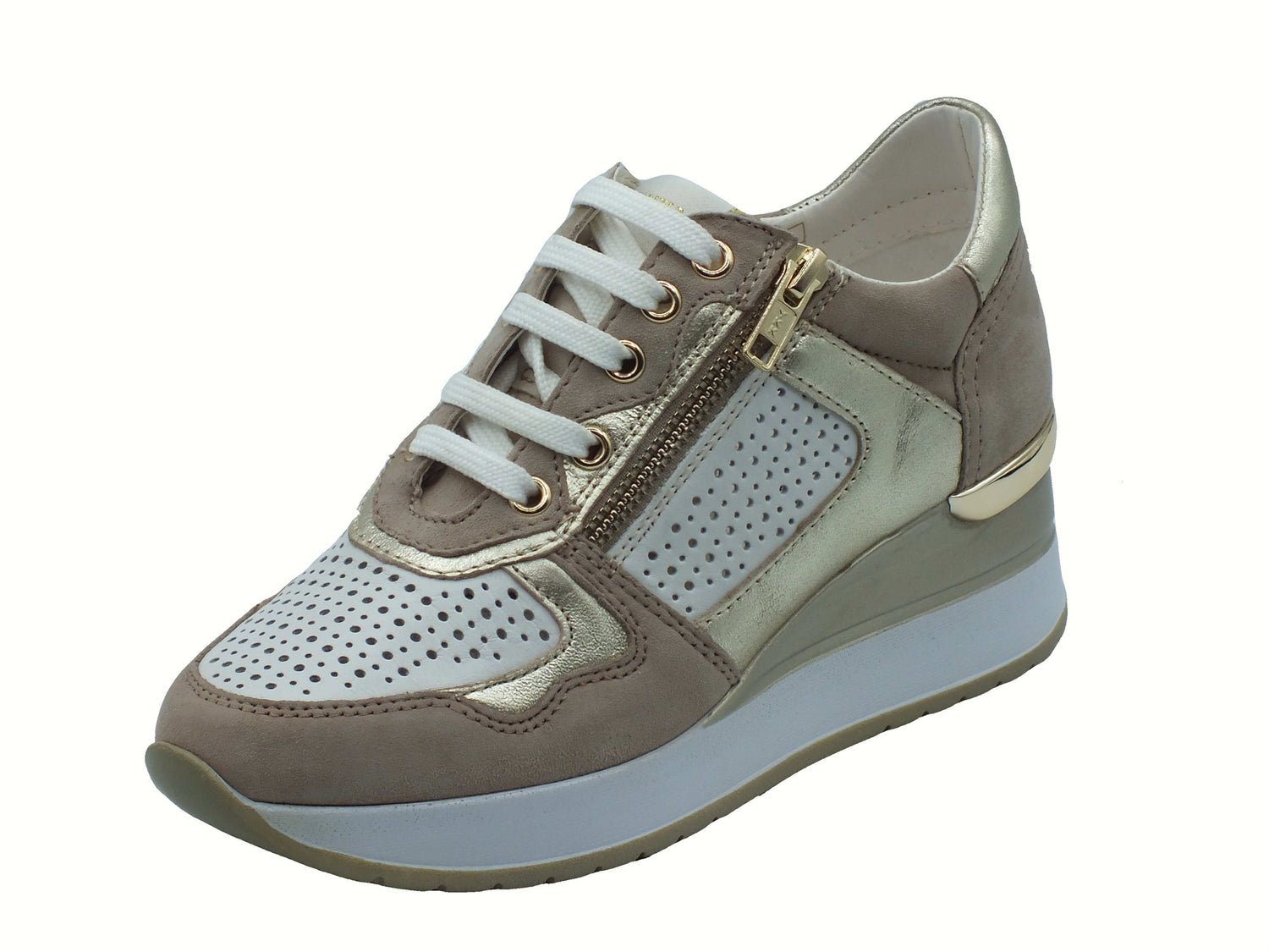 Iv2521475 clay beige white sneakers confort per donna in pelle traforata con zeppa alta