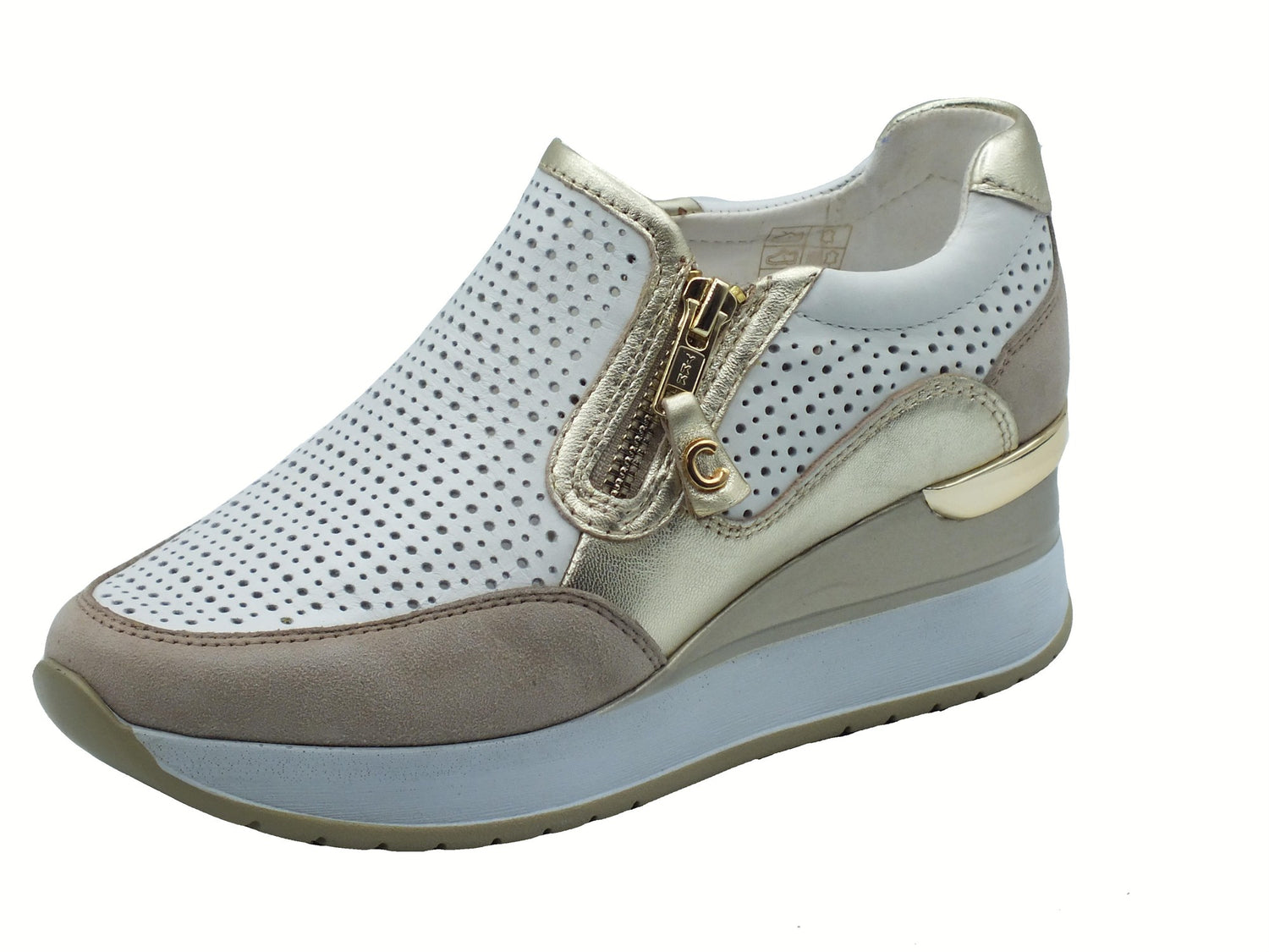 Iv2521476g clay beige sneakers per donna in pelle traforata con zeppa alta