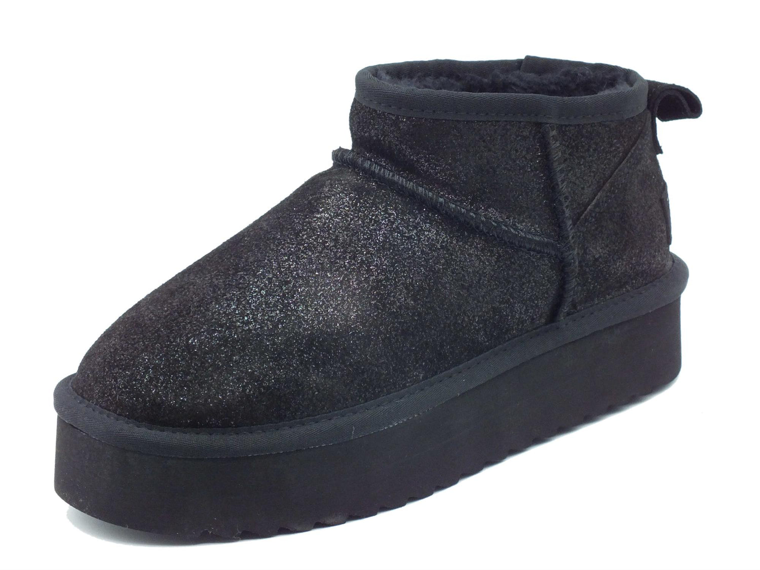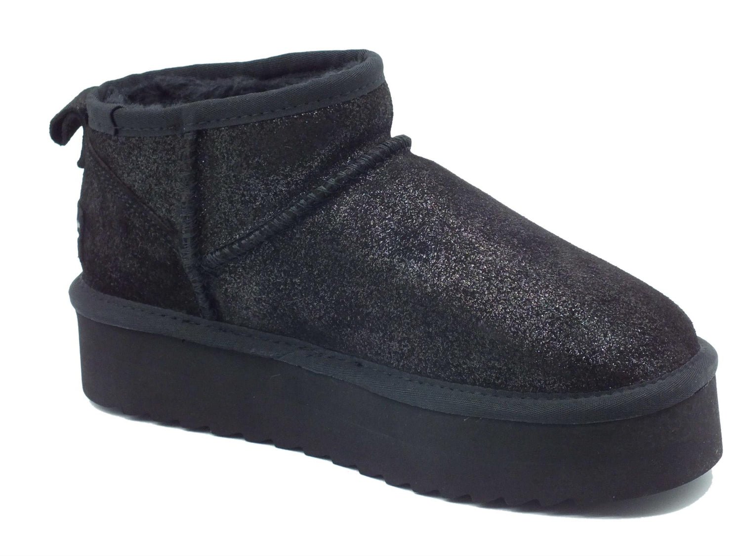 Hc.ywpla01gli nero mammuttini donna in nabuk glitterato pile zeppa alta