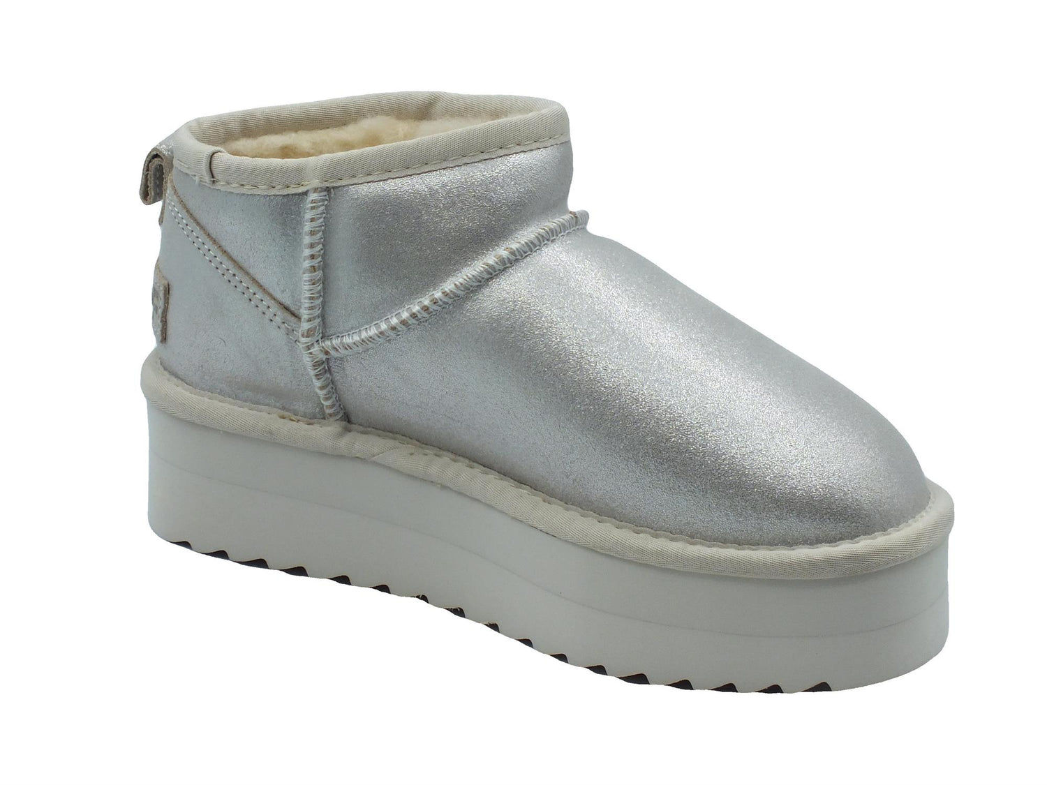 Hc.ywplamet oat mammuttini per donna in tessuto argento con pile zeppa bassa