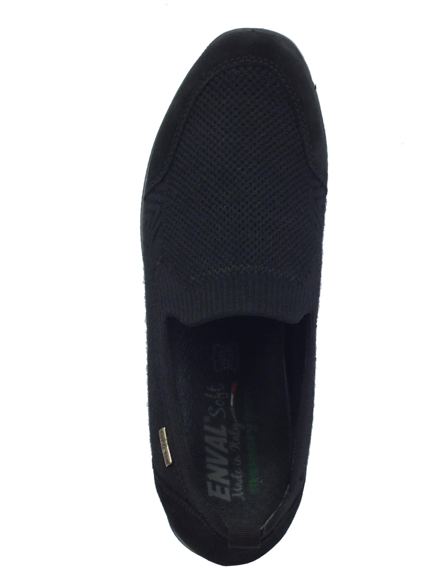 2767200 tes nero mocassini confort per donna in tessuto zeppa media