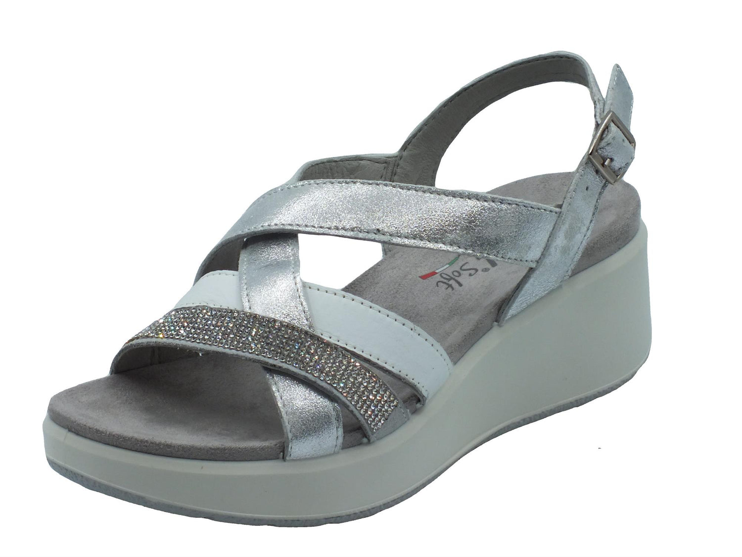 5795911 capra bianco sandali confort per donna in pelle con zeppa alta