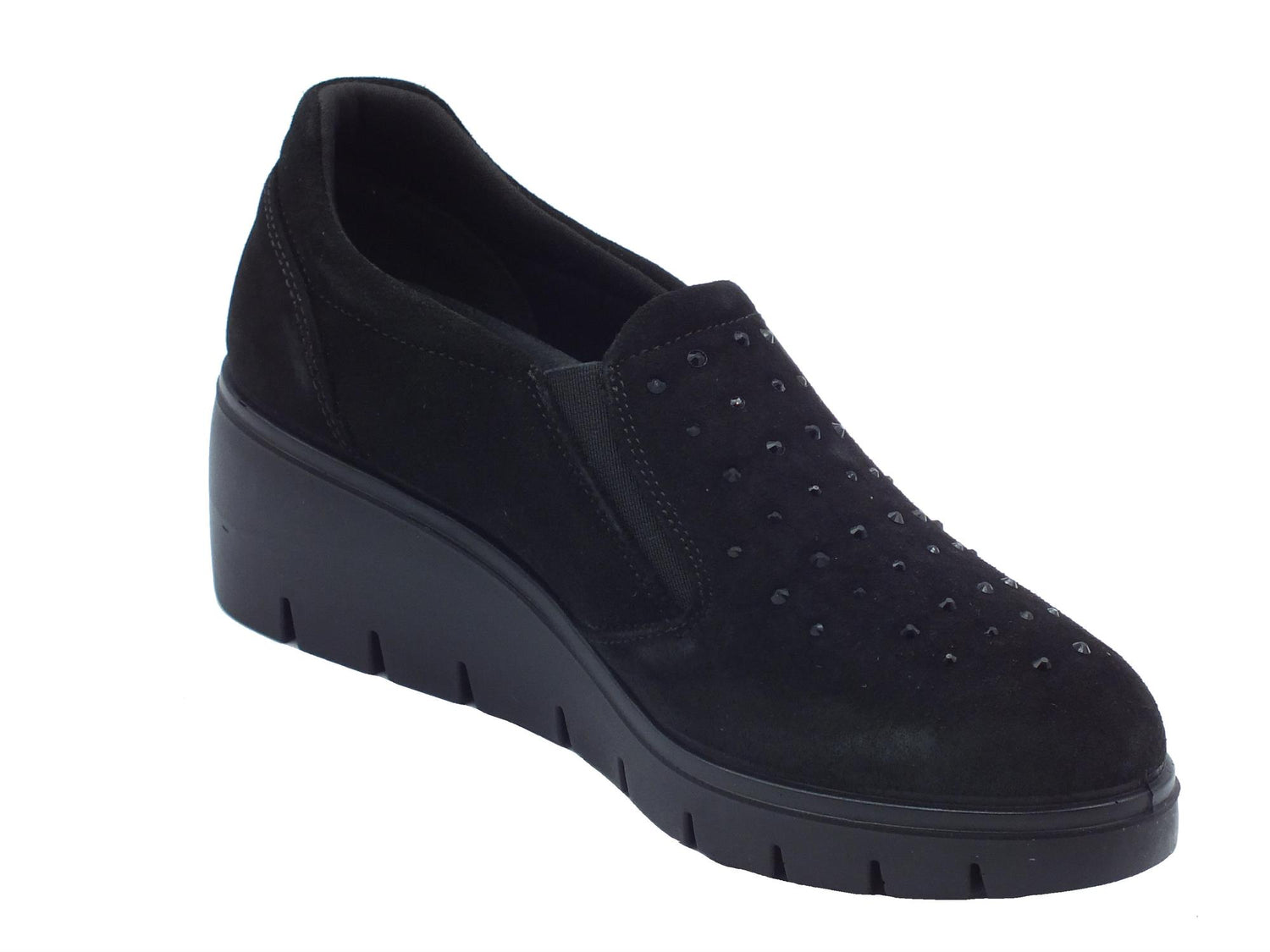 6766200 scam. super nero mocassini per donna in nabuk con zeppa alta