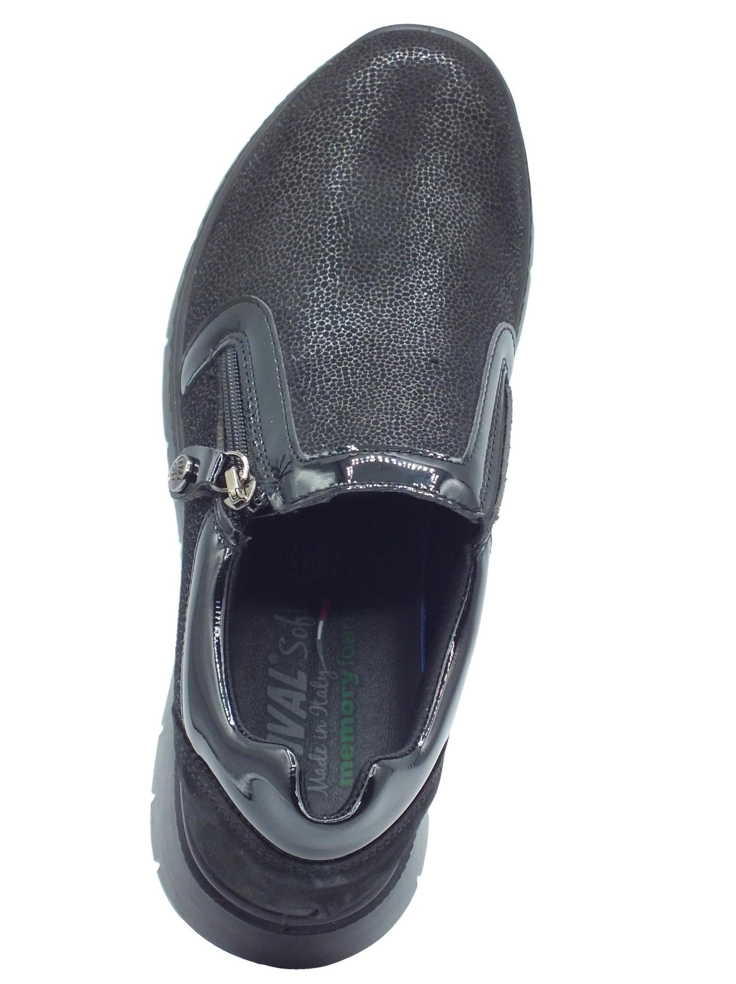 6774900 planet nero sneakers confort con zeppa bassa per donna in scamosciato
