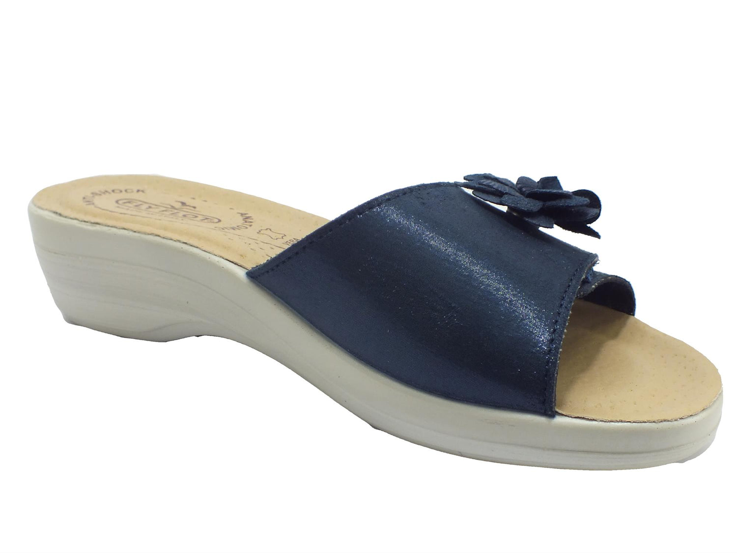 T5 b22 6e blu ciabatte donna in ecopelle satinata con regolazione a strappo fondo pelle