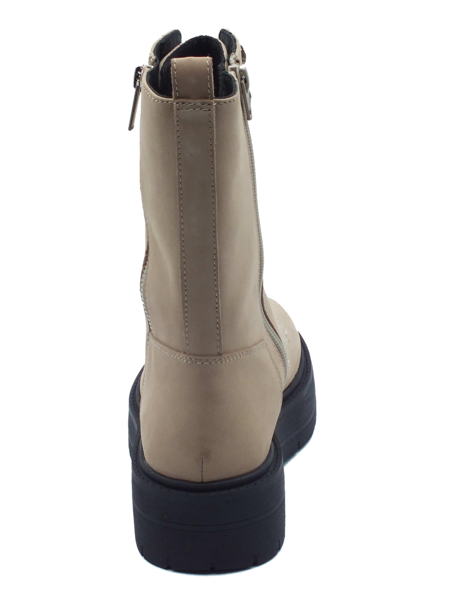 D36vdj spherica sand anfibi per donna in pelle beige con lacci e lampo