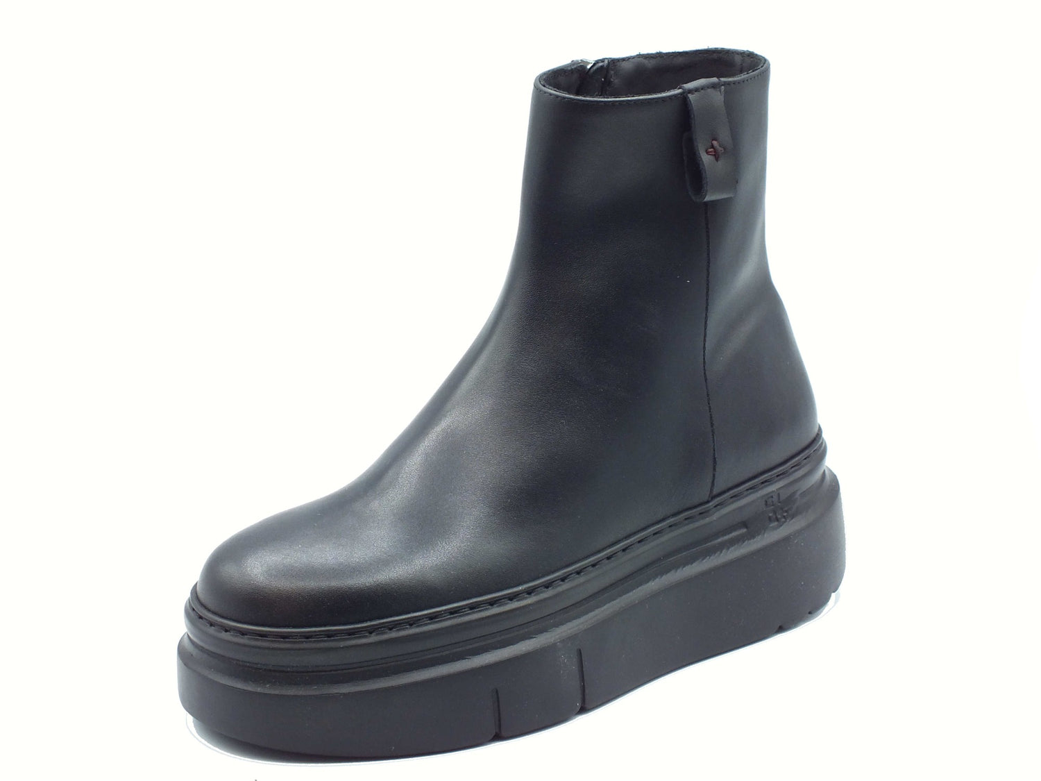 Aria220 combi black tronchetti per donna in pelle con zeppa media