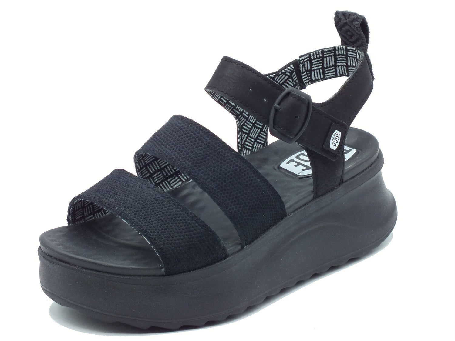Heydude 43198 delray buckle classic black sandali per donna in tessuto nero zeppa alta