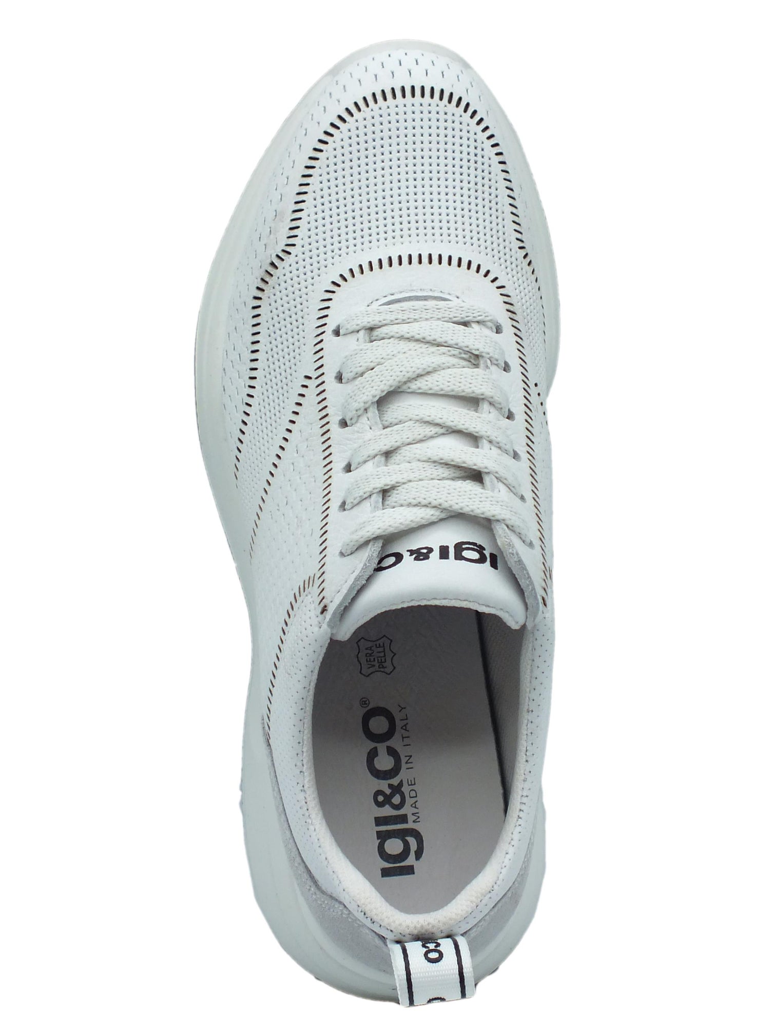3663300 bianco sneakers per donna in pelle traforata con lacci e zeppa alta