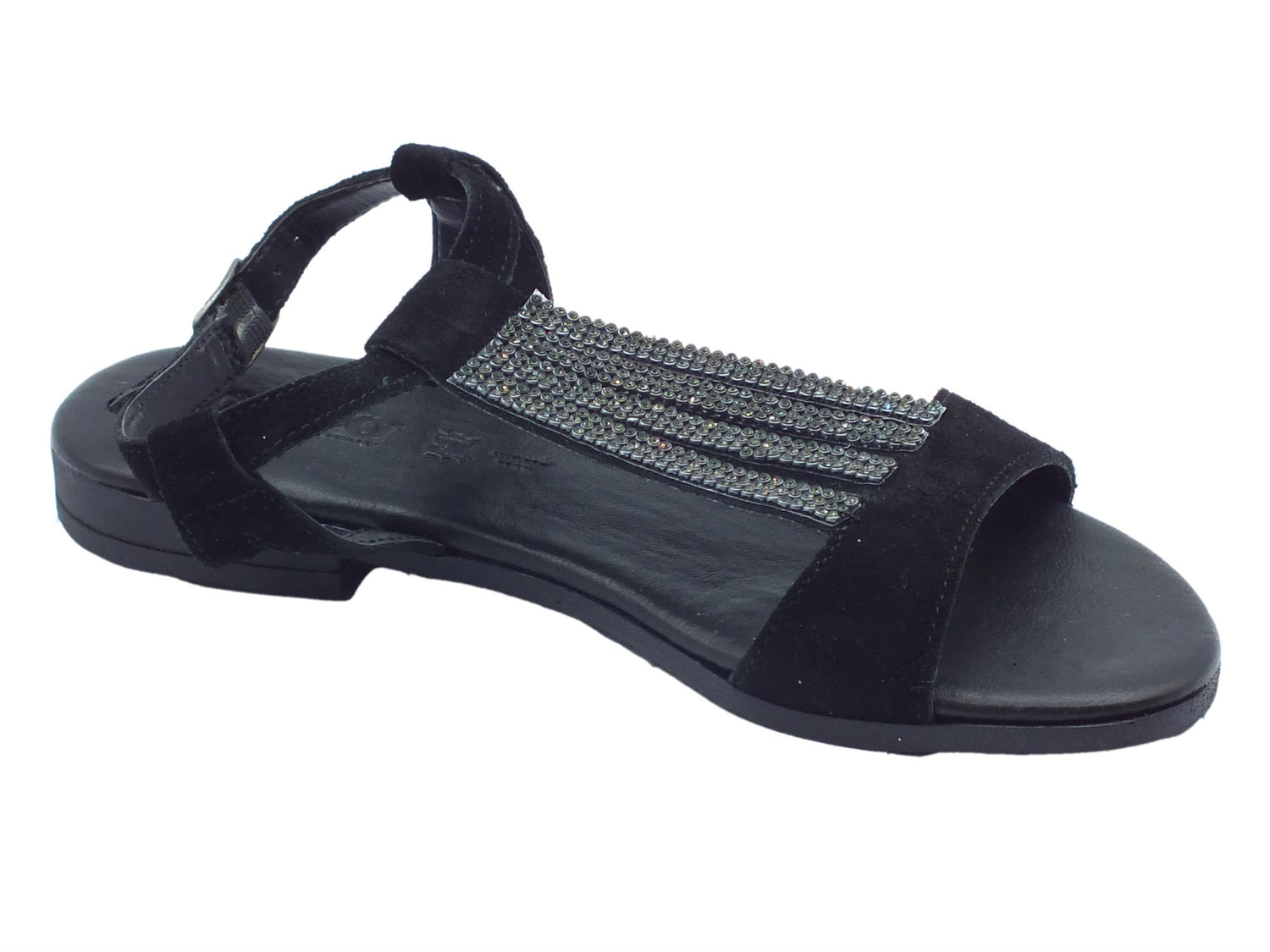 3683500 scamosciato soft nero sandali per donna in nabuk con tacco basso
