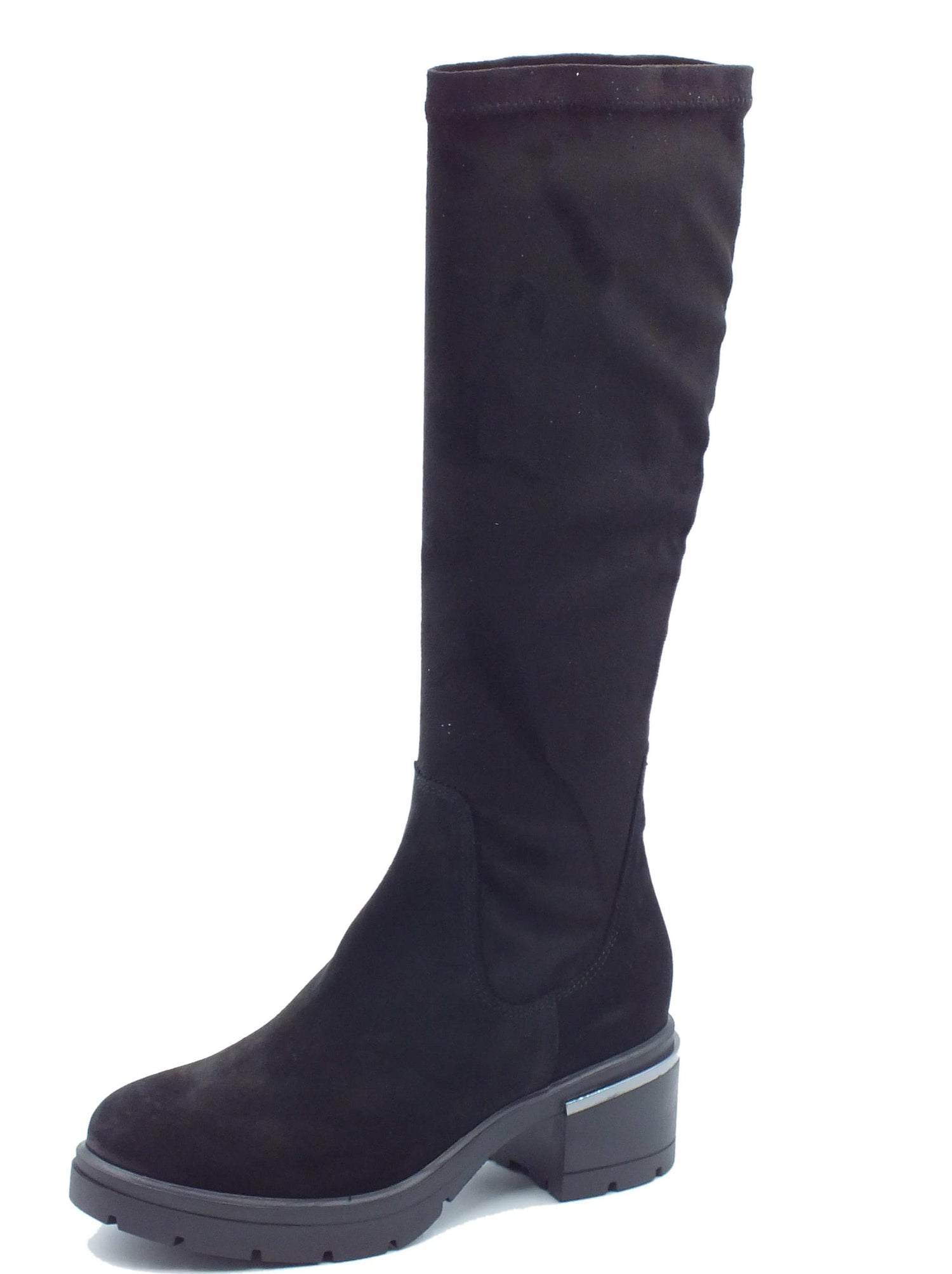 4683611 scam nero stivali con tacco per donna in nabuk con mezzalampo
