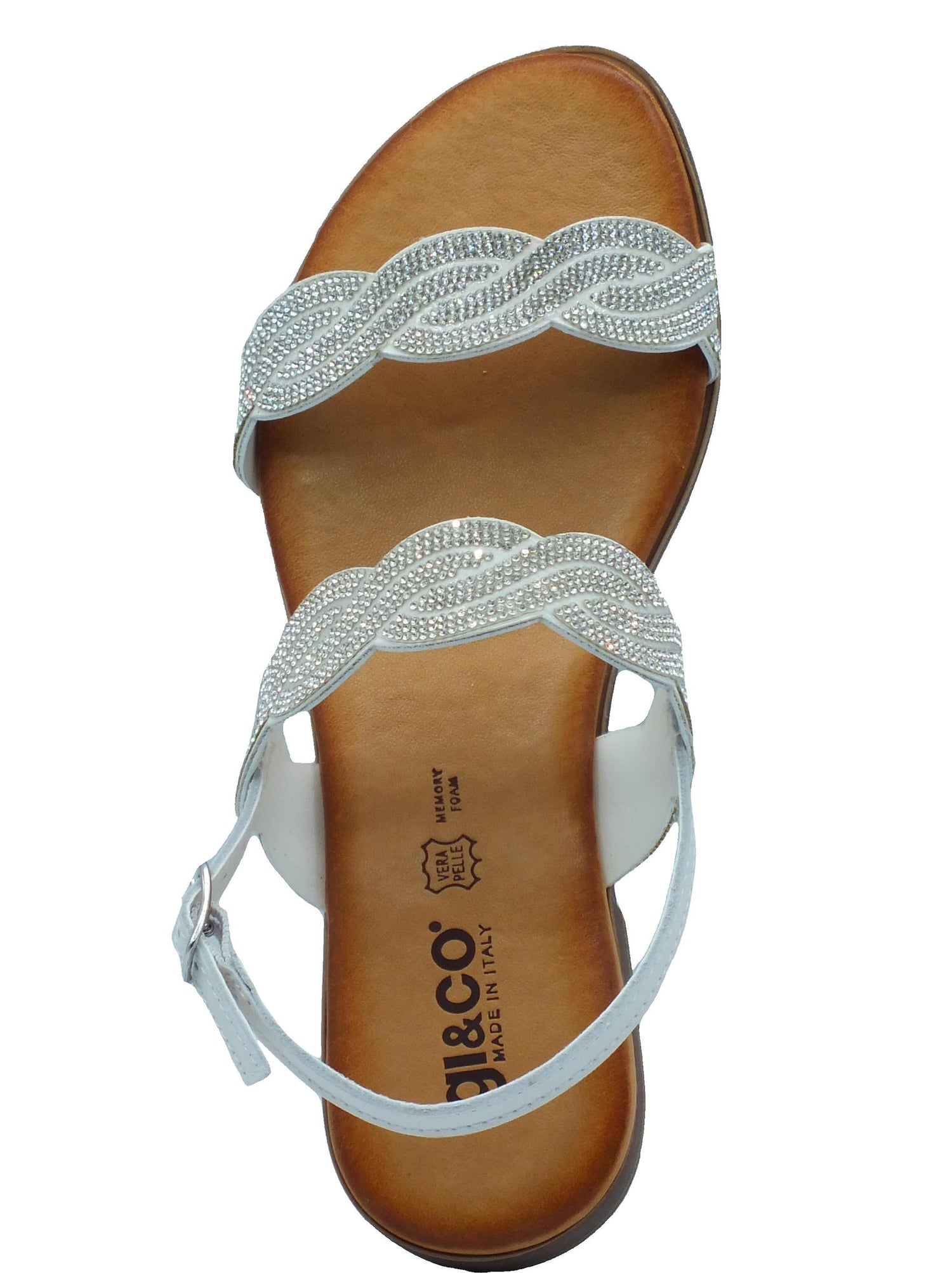 5682544 vitello latte sandali per donna in pelle con brillantini argento tacco basso