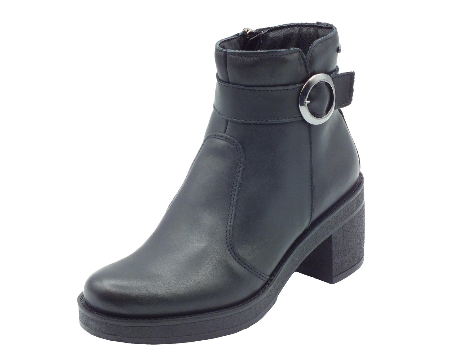 6660300 nappa soft nero tronchetti con tacco medio per donna in pelle con lampo