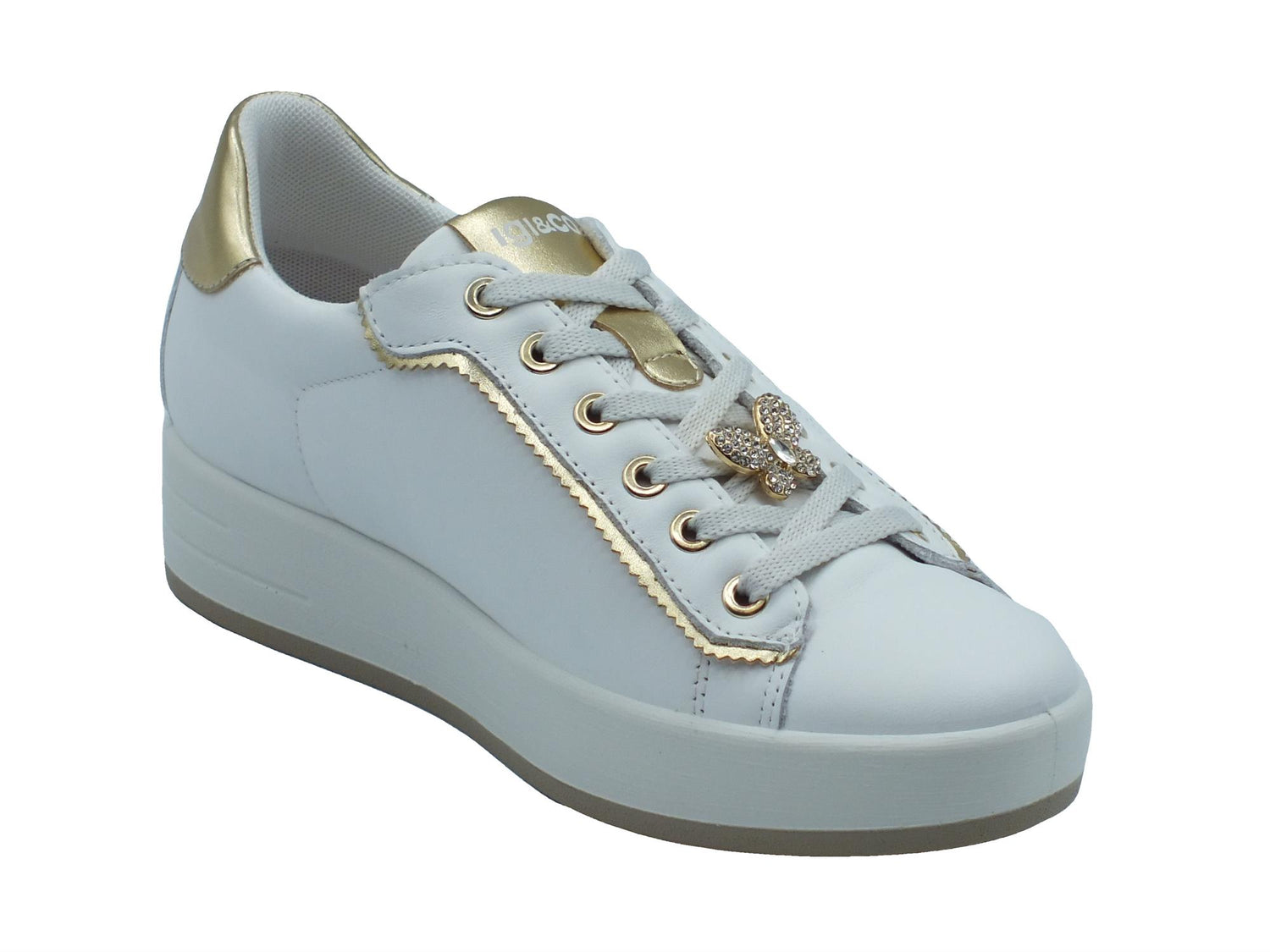 7655200 nappa soft bianco oro sneakers confort per donna in pelle con lacci e zeppa alta