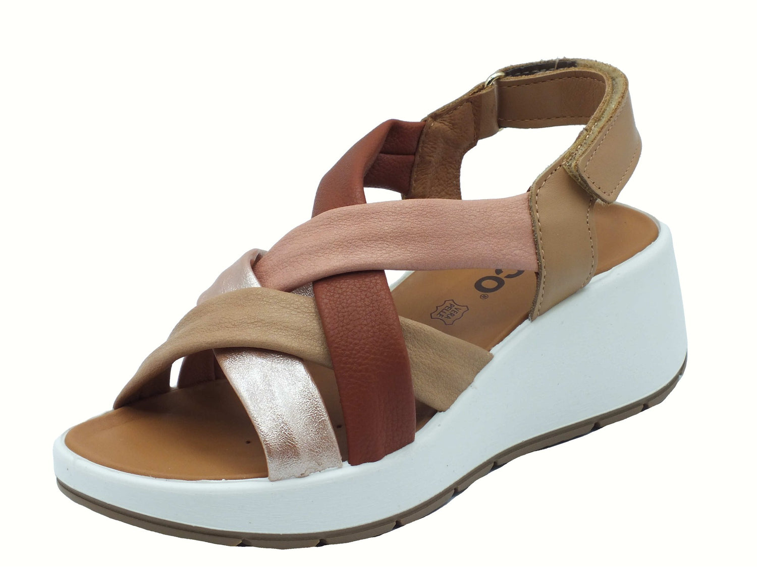 7666711 nappa taupe sandali per donna in pelle con zeppa alta chiusura strappo