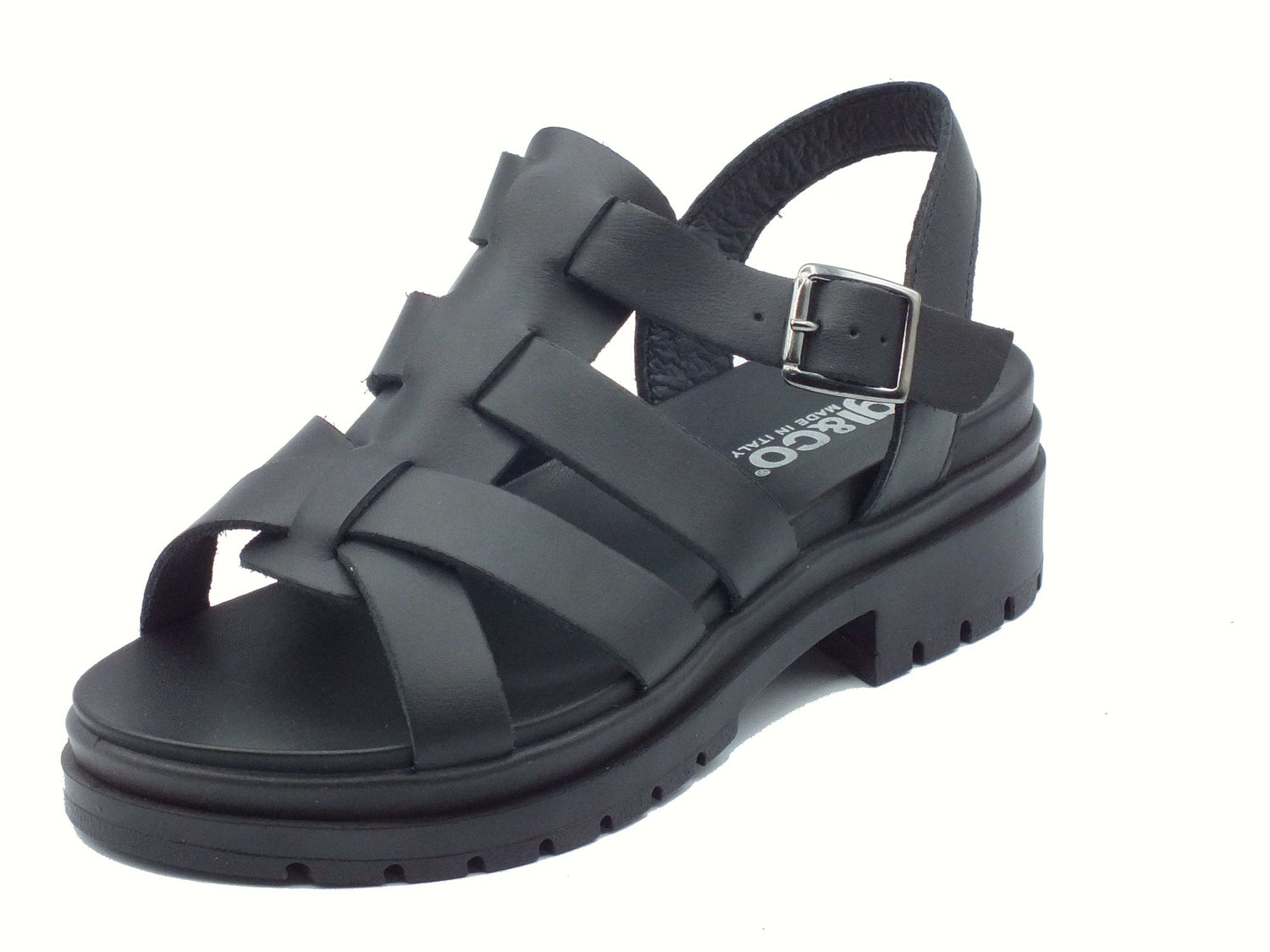 7672133 vitello scirocco nero sandali per donna con zeppa bassa in pelle
