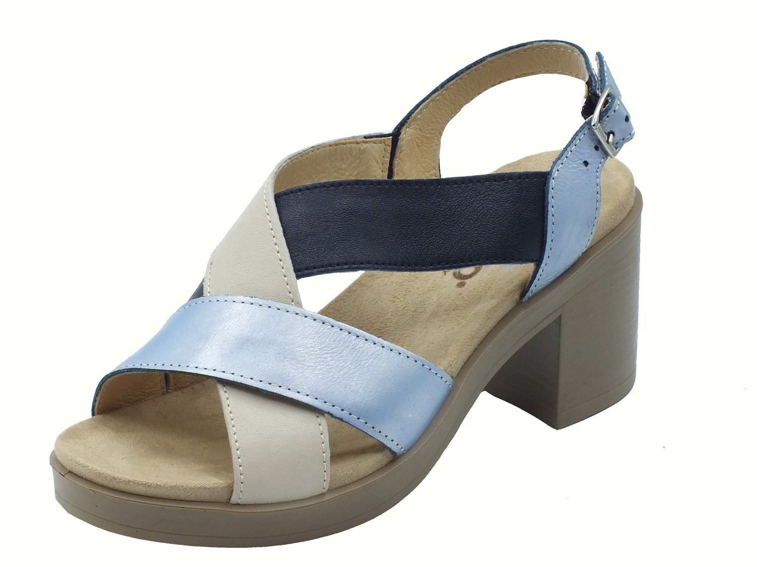 7674144 laminato cielo sandali per donna in pelle con tacco alto e fibietta