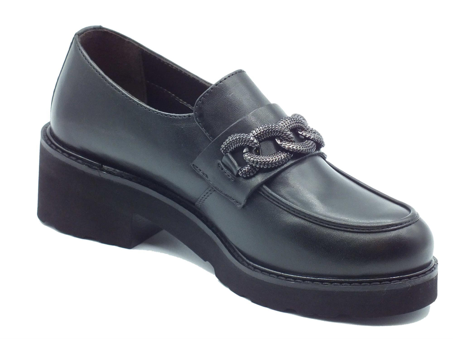 034321 nero mocassini comfort per donna in pelle con tacco medio