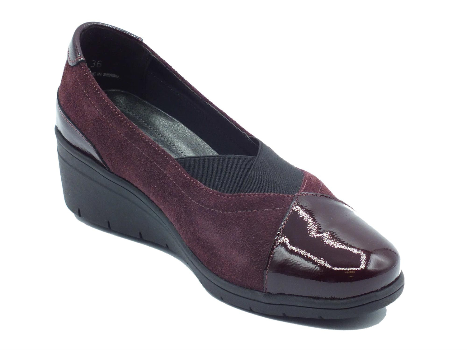 K91616d bordò mocassini comfort per donna in nabuk con zeppa media